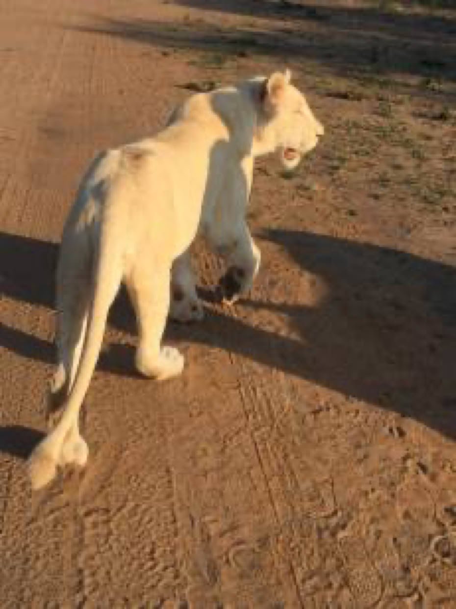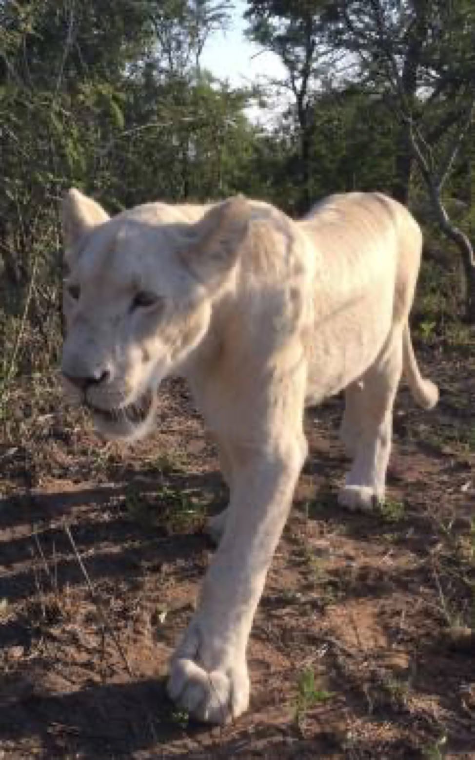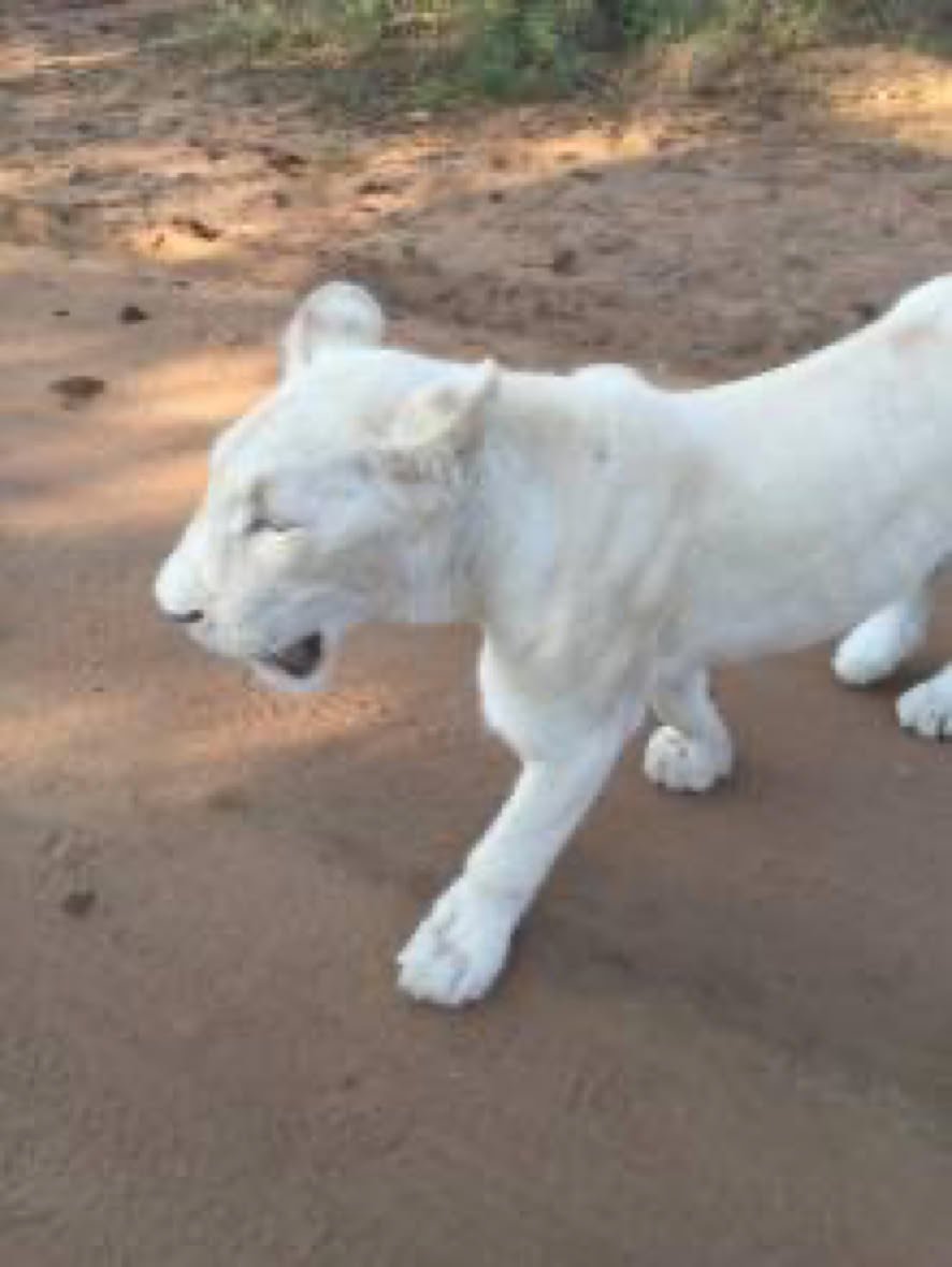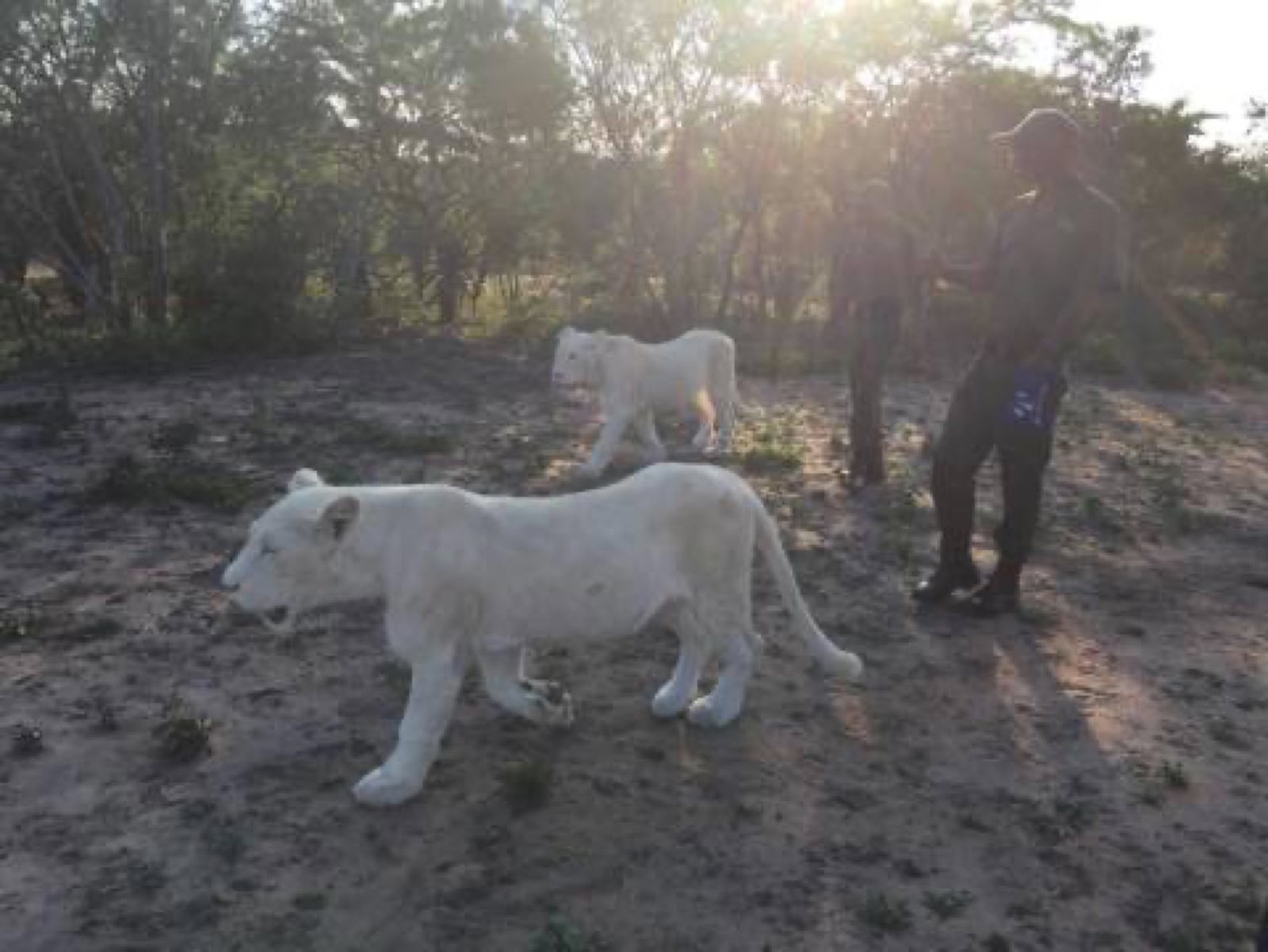 Grand moment ce matin avec la promenade en compagnie de 2 lionnes blanches.