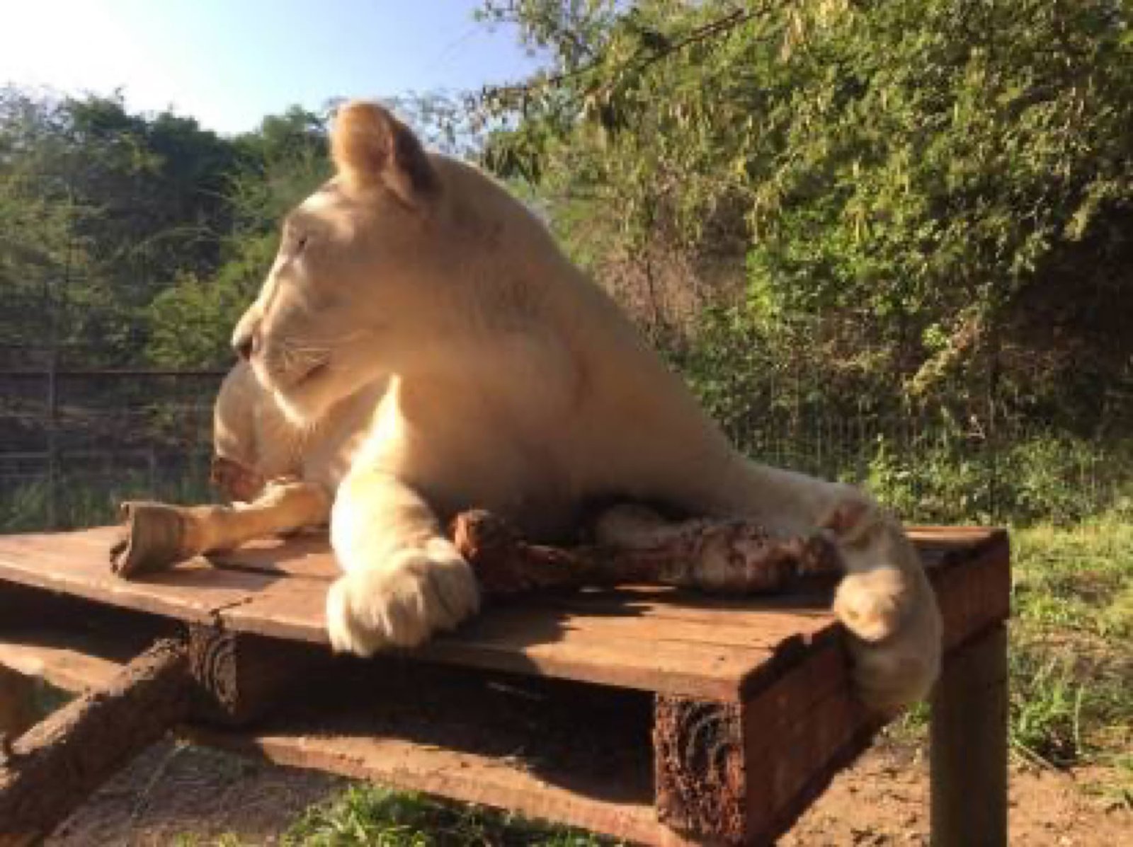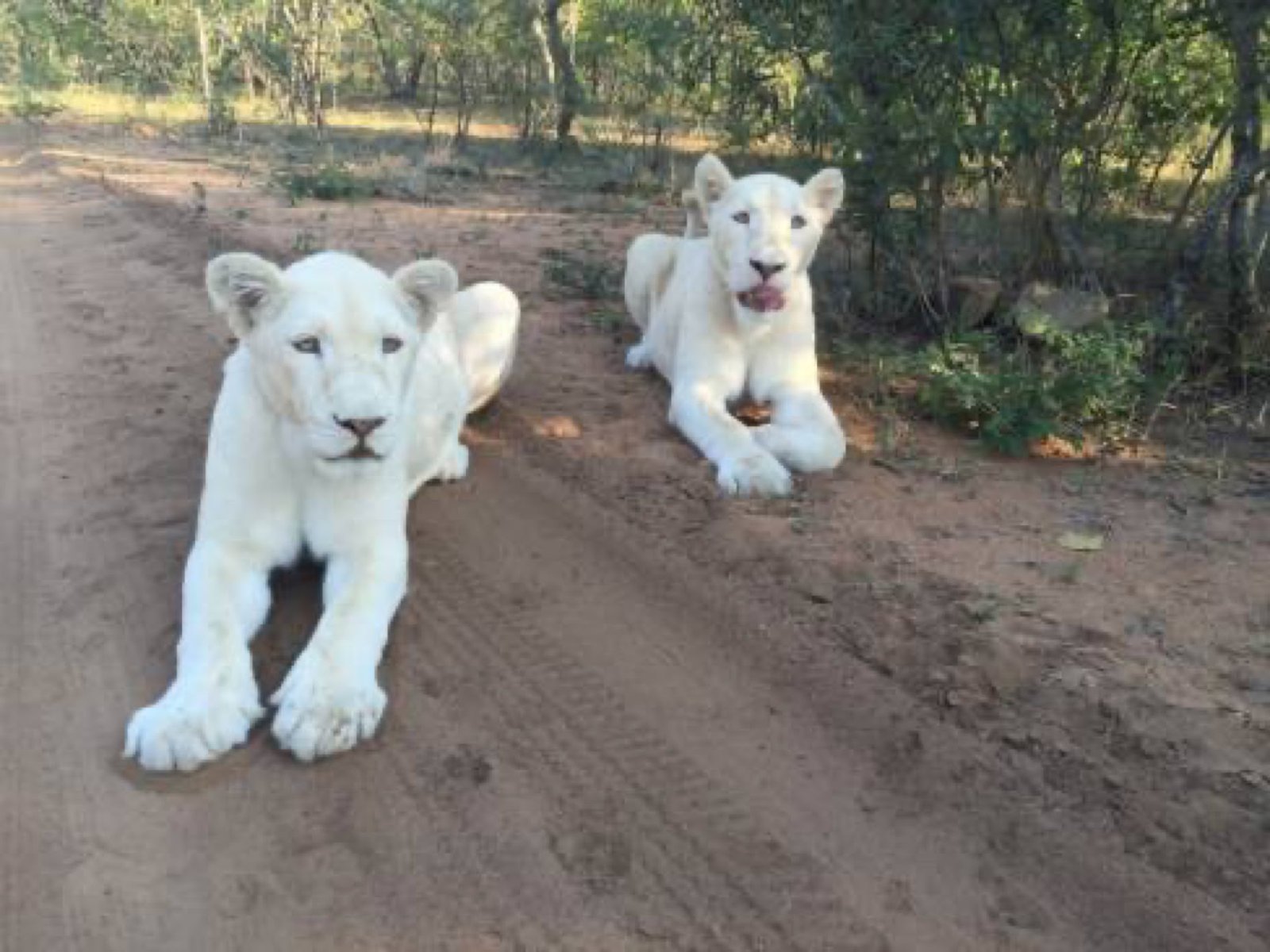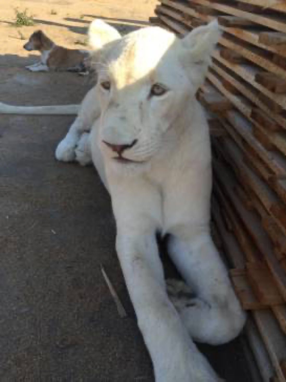 Grand moment ce matin avec la promenade en compagnie de 2 lionnes blanches.