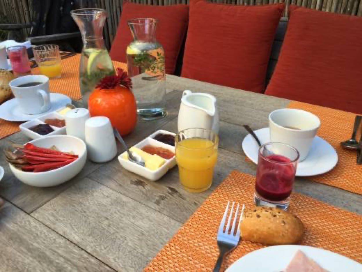 Agréable petit-dej avec comme seule surprise un jus de betterave. Bon moment en terrasse.