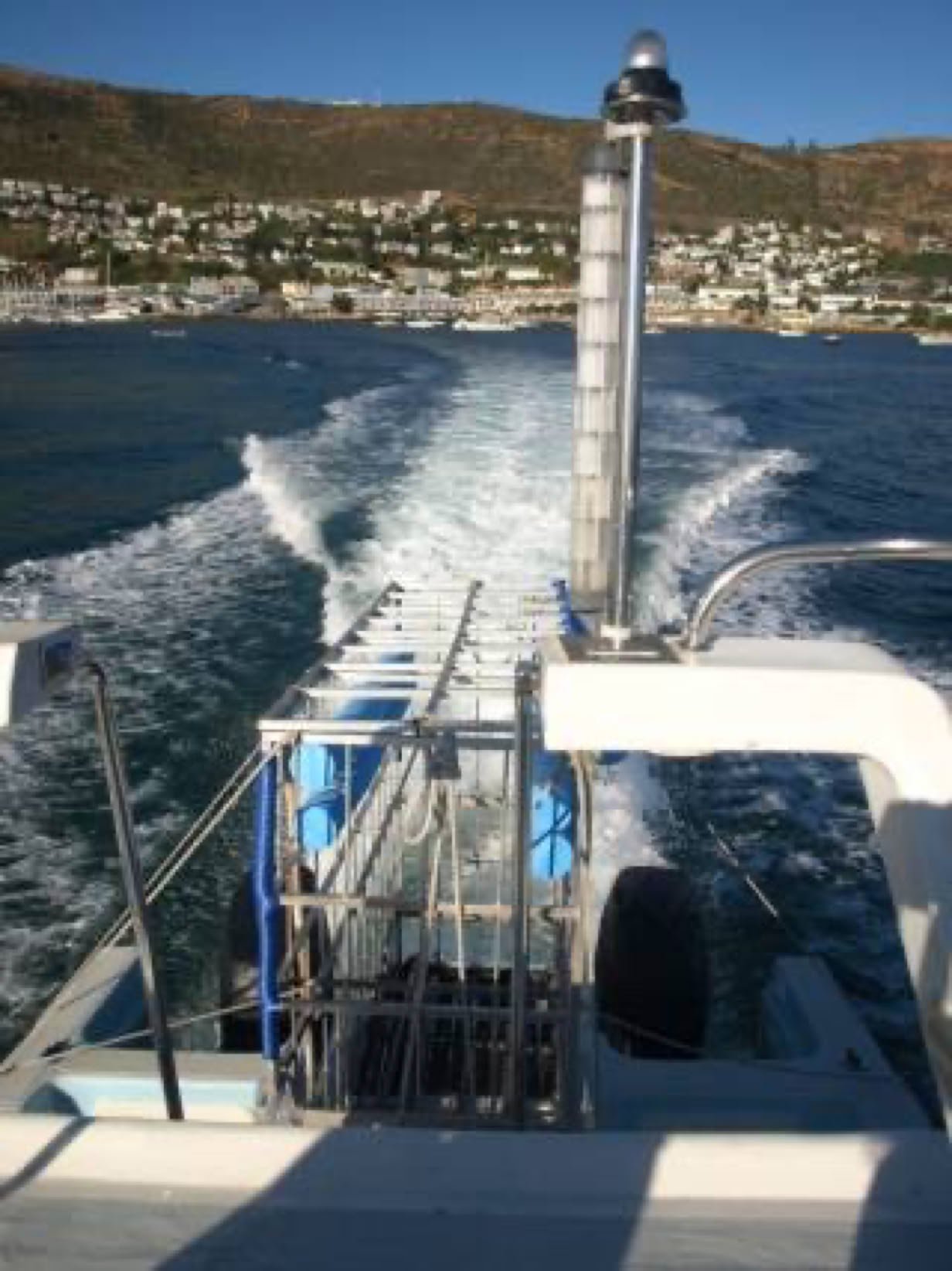 Arrêt du bateau, descente de la cage et... les ennuis commencent.