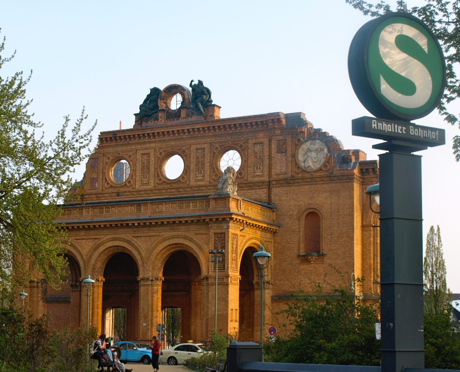 Jadis la plus grande et la plus célèbre des gares de Berlin, il n'en reste plus qu'un pan de façade et un portique dressés sur un terrain désert.