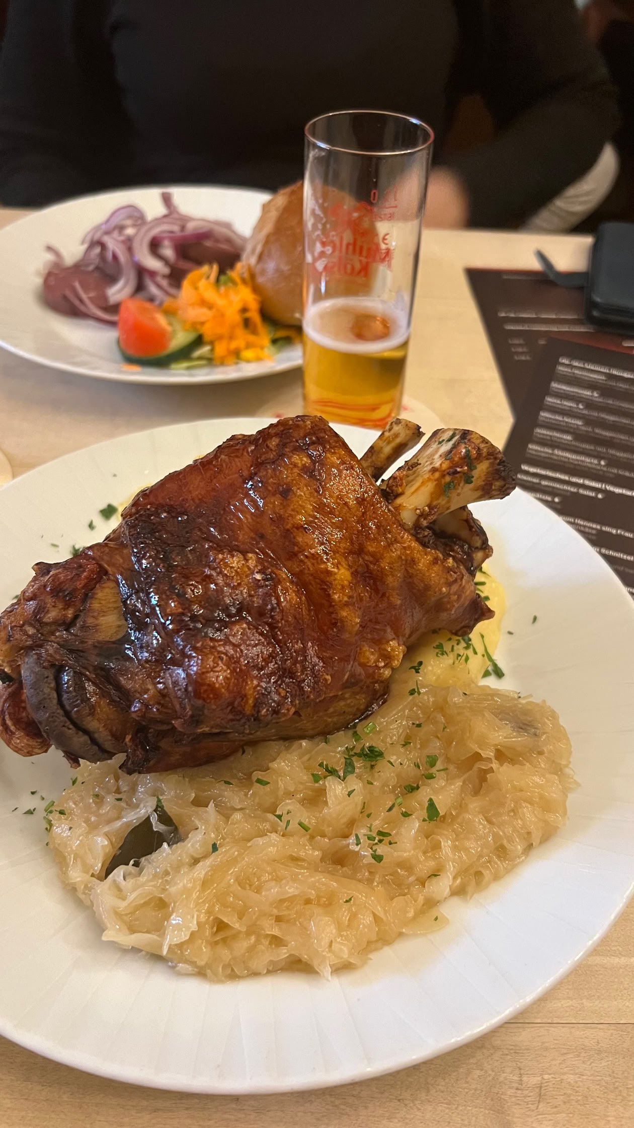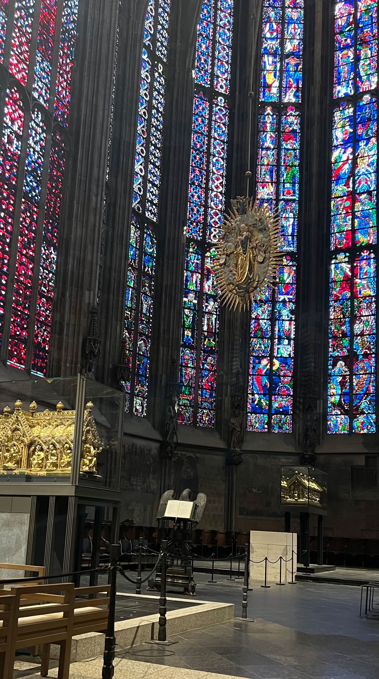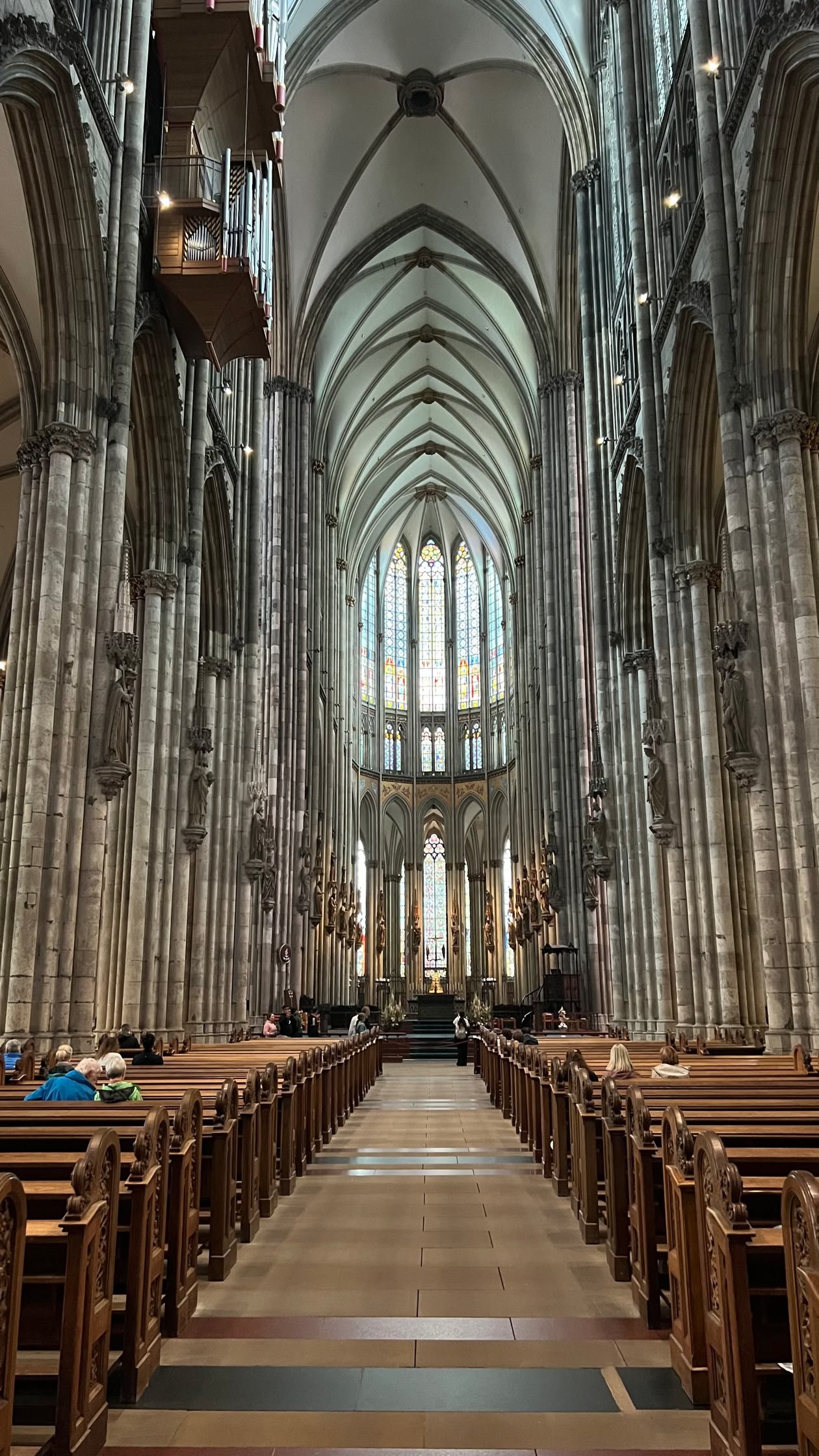 Une fois arrivés à Köln, nous allons visiter la célèbre Cathédrale. Son aspect extérieur est très sombre apparemment à cause de la pollution. L’intérieur est plus joli que l’extérieur. Nous terminons la soirée dans un restau sympa avec au menu, pour moi, une jambette accompagnée de choucroute et de la bière locale (Kölsch).