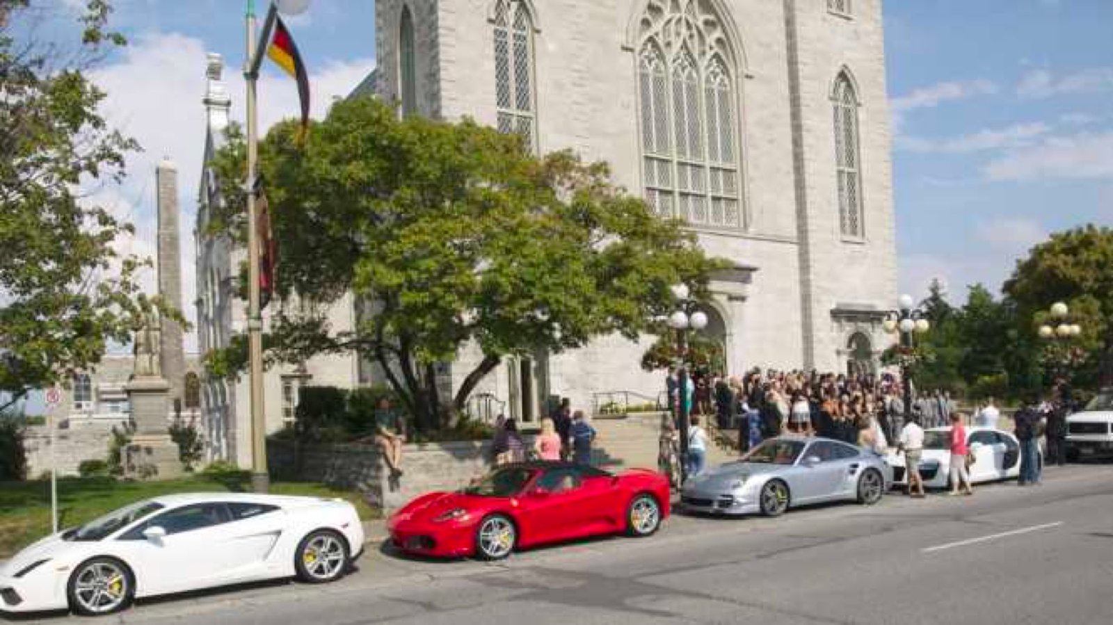 Mariage fortuné à voir les voitures stationnées devant l'édifice.