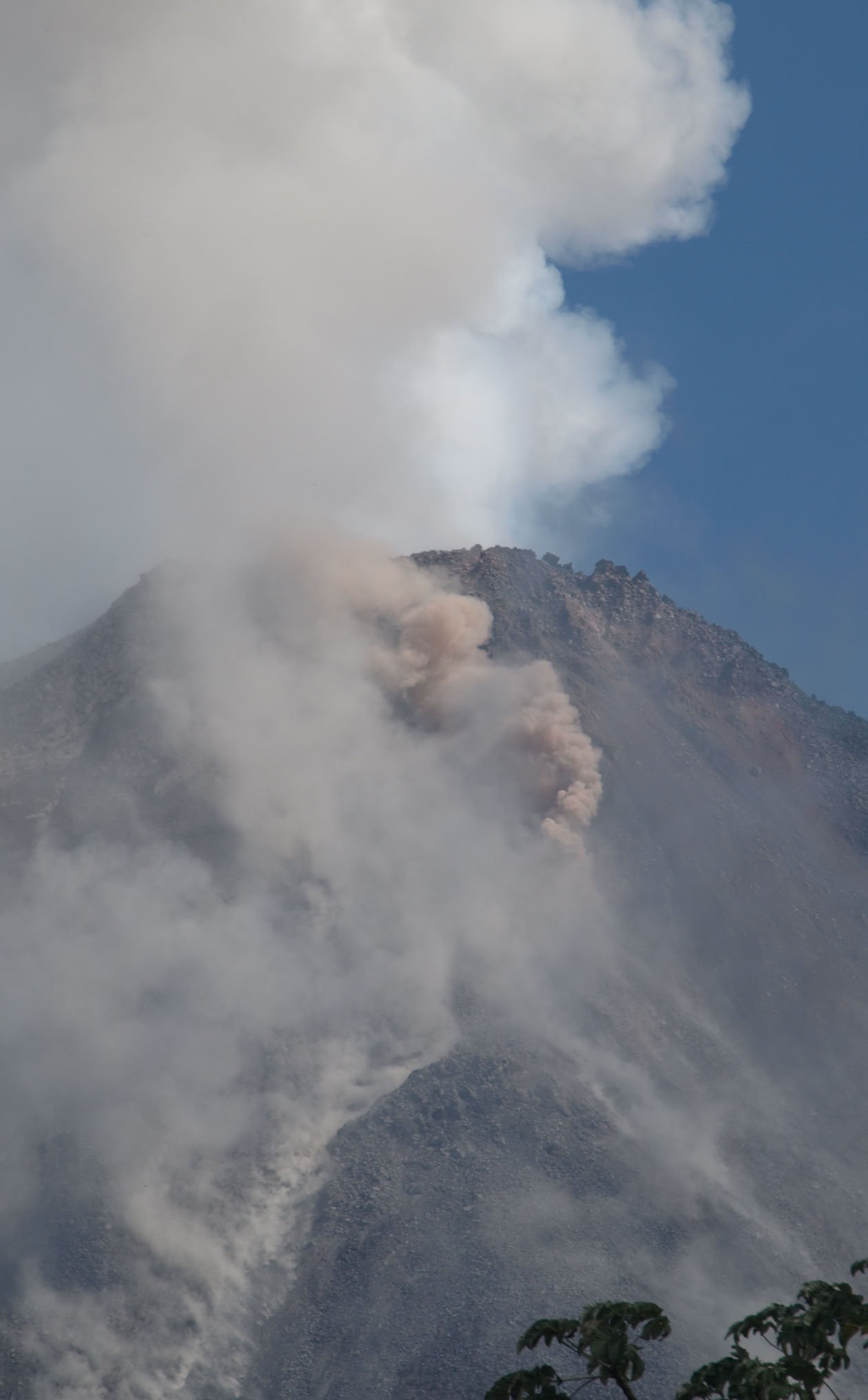 volcan en éruption. A l'occasion d'une ballade, avons entendu une forte explosion. Dans la foulée, avons vu des roches éjectées ainsi qu'une épaisse fumée blanche au dessus du cône...
