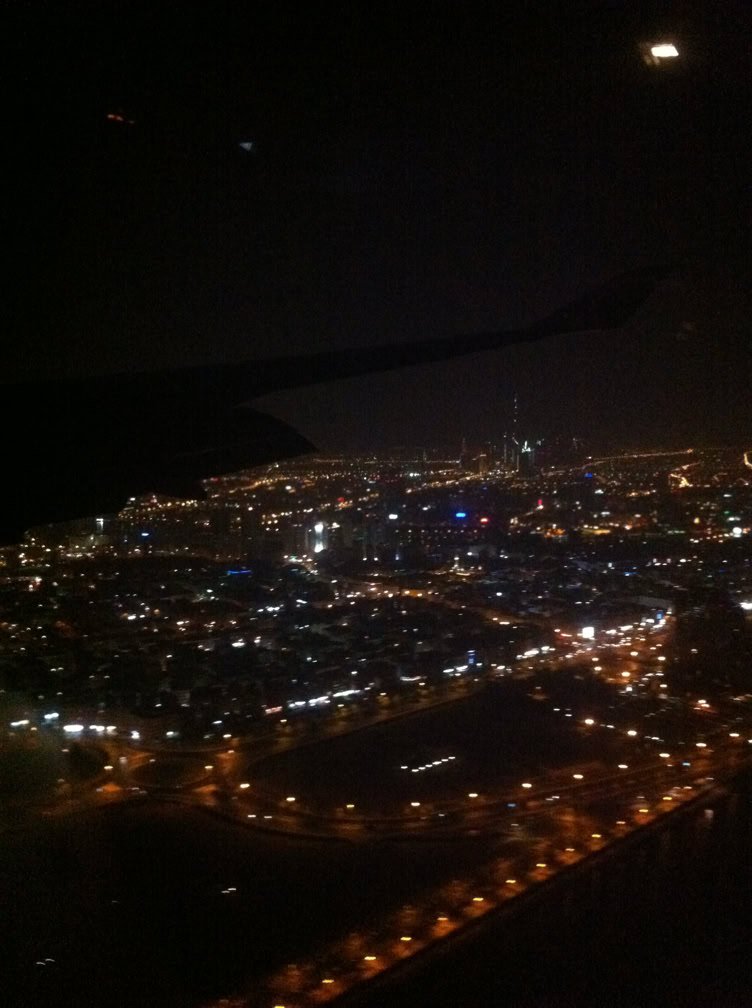 A droite, arrivée (vers minuit) à Dubaï