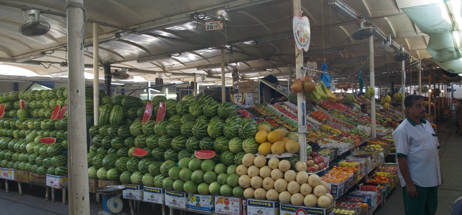 J'adore visiter les marchés. Les odeurs, les couleurs, les produits parfois inconnus, les vendeurs. A Dubaï, avons raté le marché de poissons. Sommes arrivés trop tard. Par contre, avons pu apprécier le marché de fruits et légumes. Toujours très coloré.