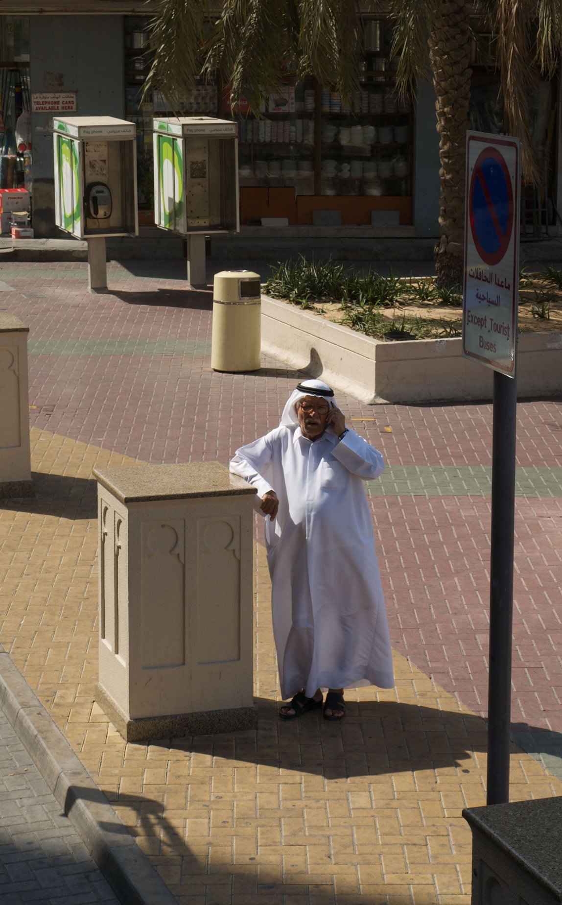 Emirati portant la gandourah (la longue robe blanche) et le keffieh (foulard)