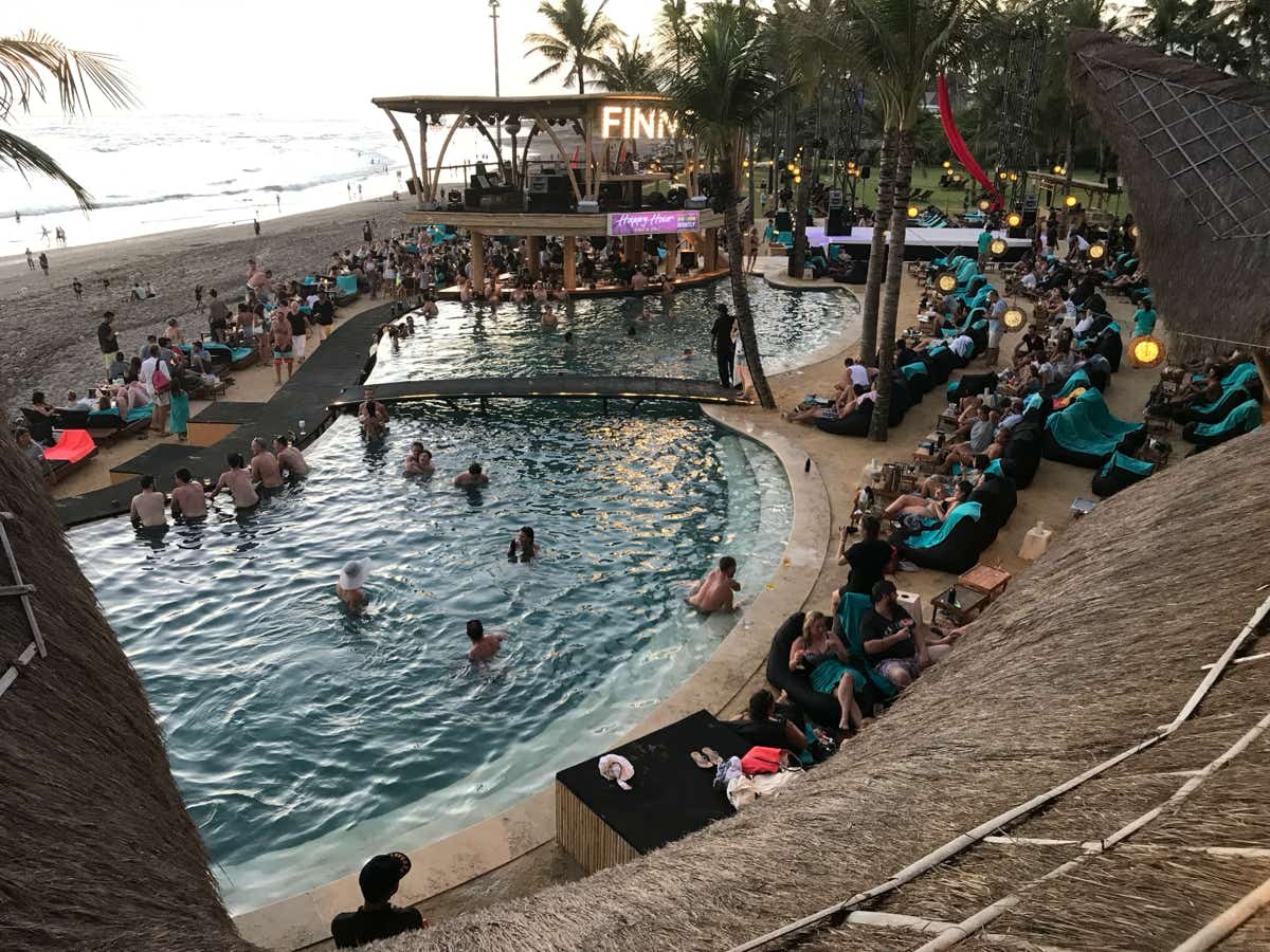 Partons ensuite pour Canggu. Nous passons la soirée dans un super endroit : le Finns. Au programme : Mojitos, Pizzas, musique et danseuses
