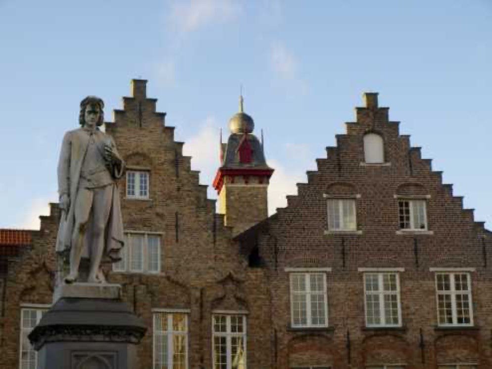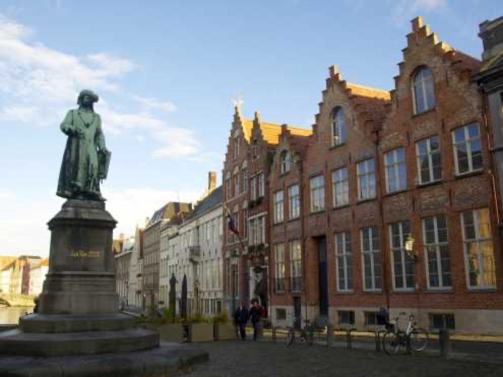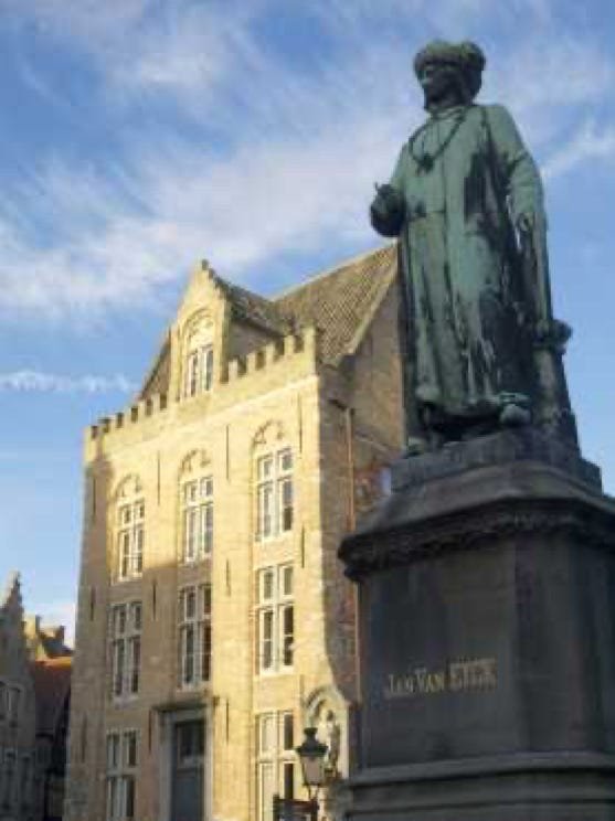Statue Jan van Eyck, peintre mort à Bruges en 1441