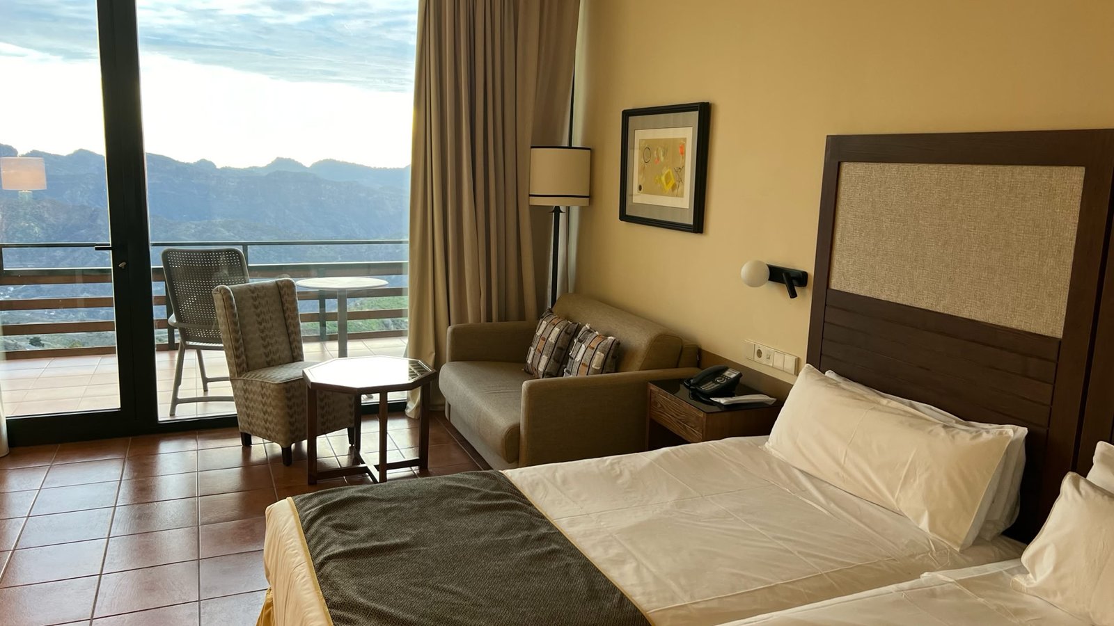 Situé dans le centre de l’île, dans les montagnes ⛰. Notre chambre s’ouvrait sur un panorama exceptionnel digne de l’Ouest US 🇺🇸ou des montagnes marocaines 🇲🇦.