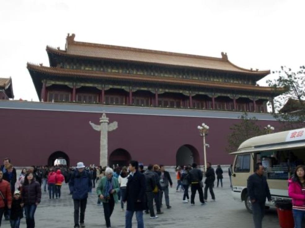 Après une balade en pousse-pousse dans les Hutong et près du lac, partons découvrir un 1er monument : La fameuse place Tian'anmen (Place de la Porte de La Paix Céleste) connue surtout pour des images télévisées incroyables... Mais cela c'était avant...