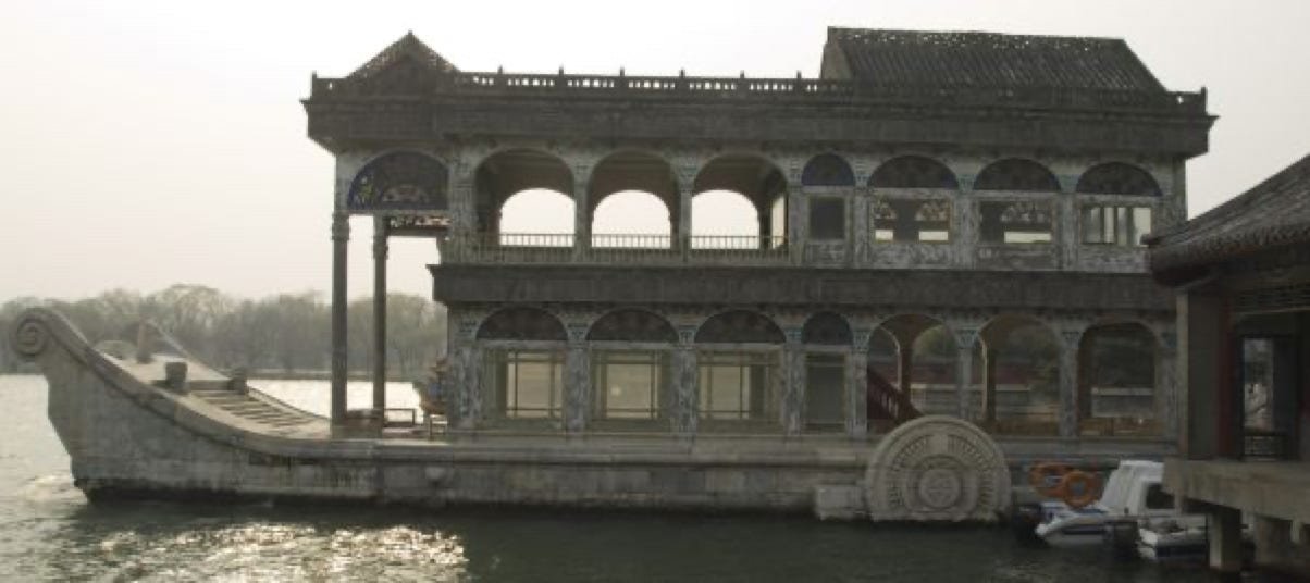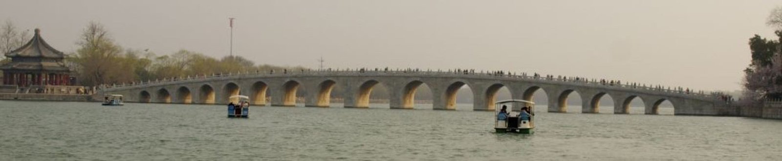 Après cette visite chargée (beaucoup de monde et beaucoup à voir), partons ensuite pour le Palais d'Eté. Un peu d'oxygène au bord d'un joli lac artificiel. Le palais d'Été est principalement dominé par la Colline de la Longévité et le Lac de Kunming. L'ensemble couvre une surface de 2,9 km², dont les trois-quarts sont occupés par le plan d'eau.