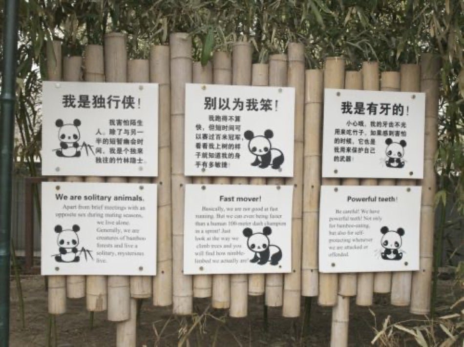 Les distances entres animaux sont très importantes. Nous focalisons donc sur l'essentiel et notamment le fameux Panda de Chine. Animal menacé.