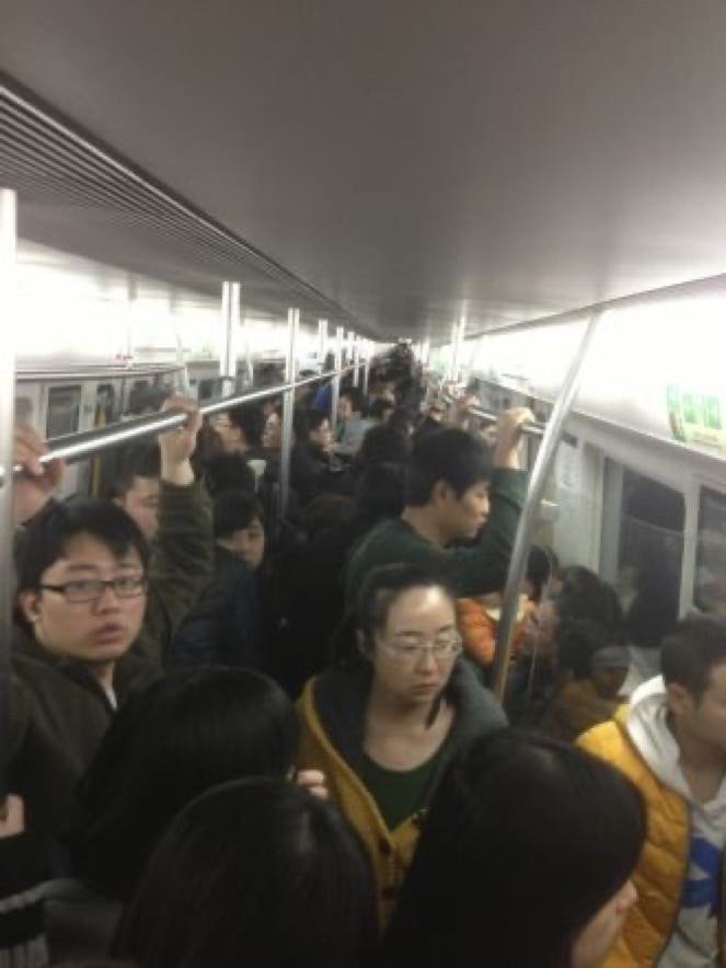 D'abord le métro. On s'en douterait : beaucoup de monde. Il y a des agents chargés de pousser les gens pour les aider à monter dans le wagon. Cela dit, contrairement à Paris, tout se passe dans la bonne humeur. The Chinese style...