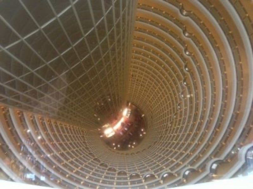 Verrière donnant sur le hall de l'hôtel, un trentaine d'étage plus bas.
