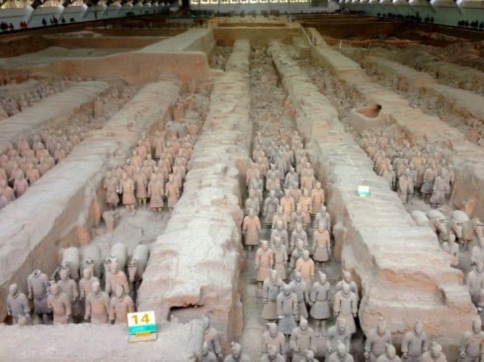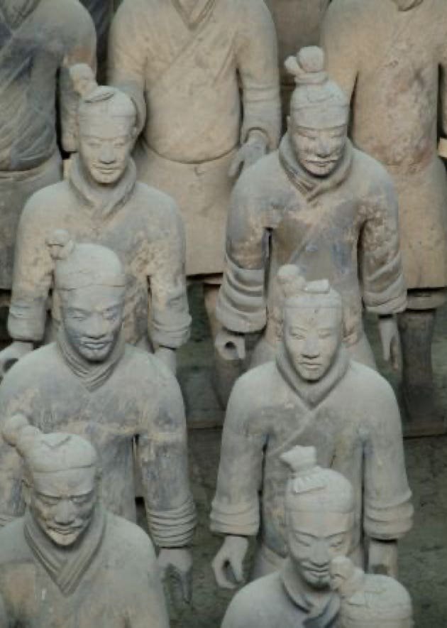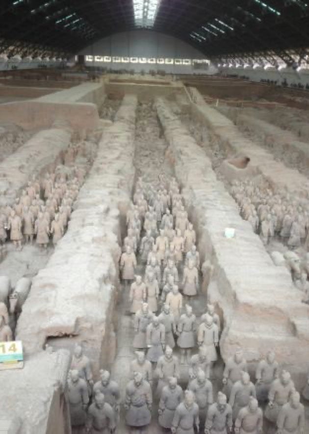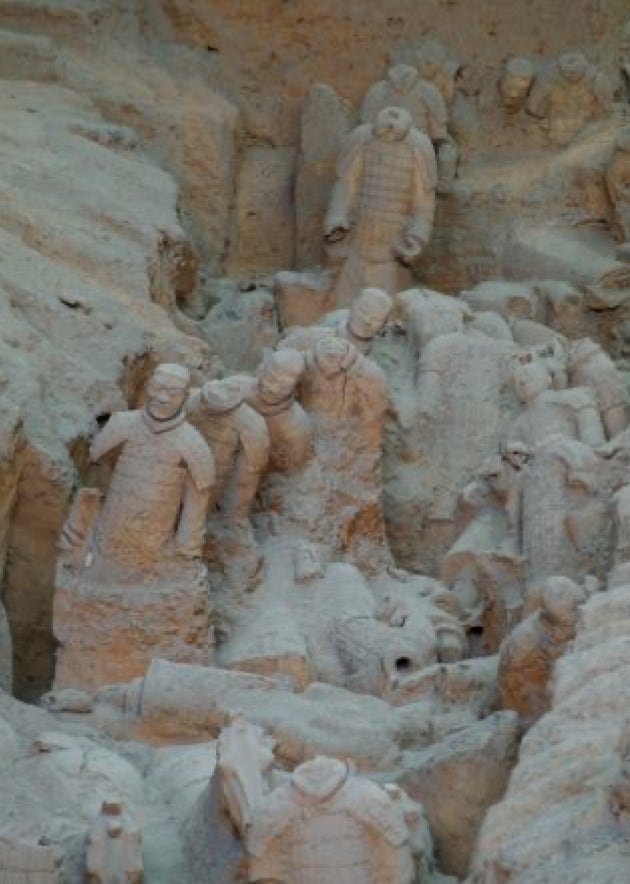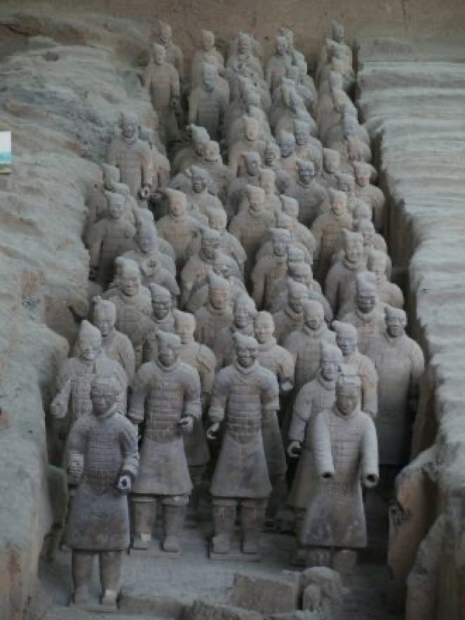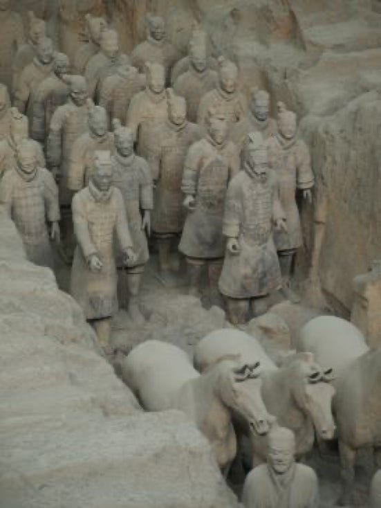 Ce sont 8000 statues de soldats datant de 210 av. J-C; statues qui ont quasiment toutes un visage différencié, et de chevaux en terre cuite.