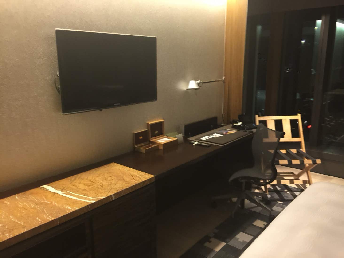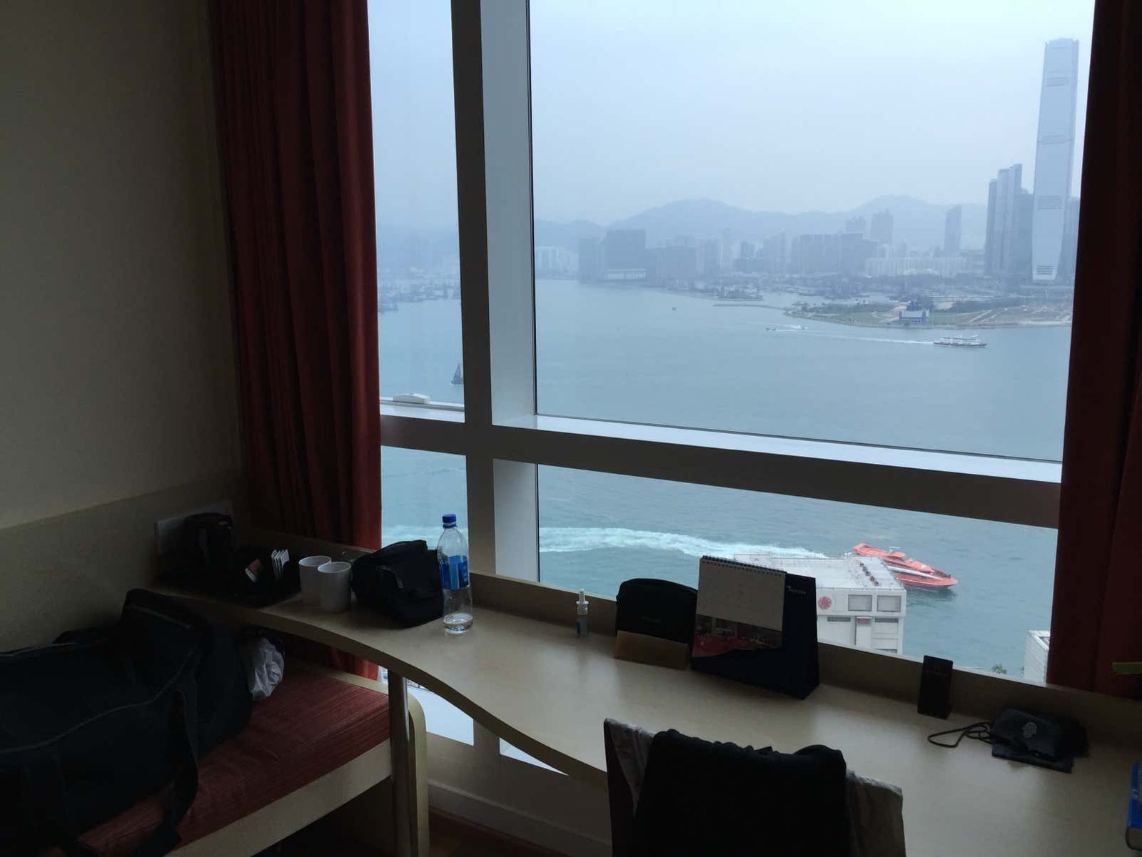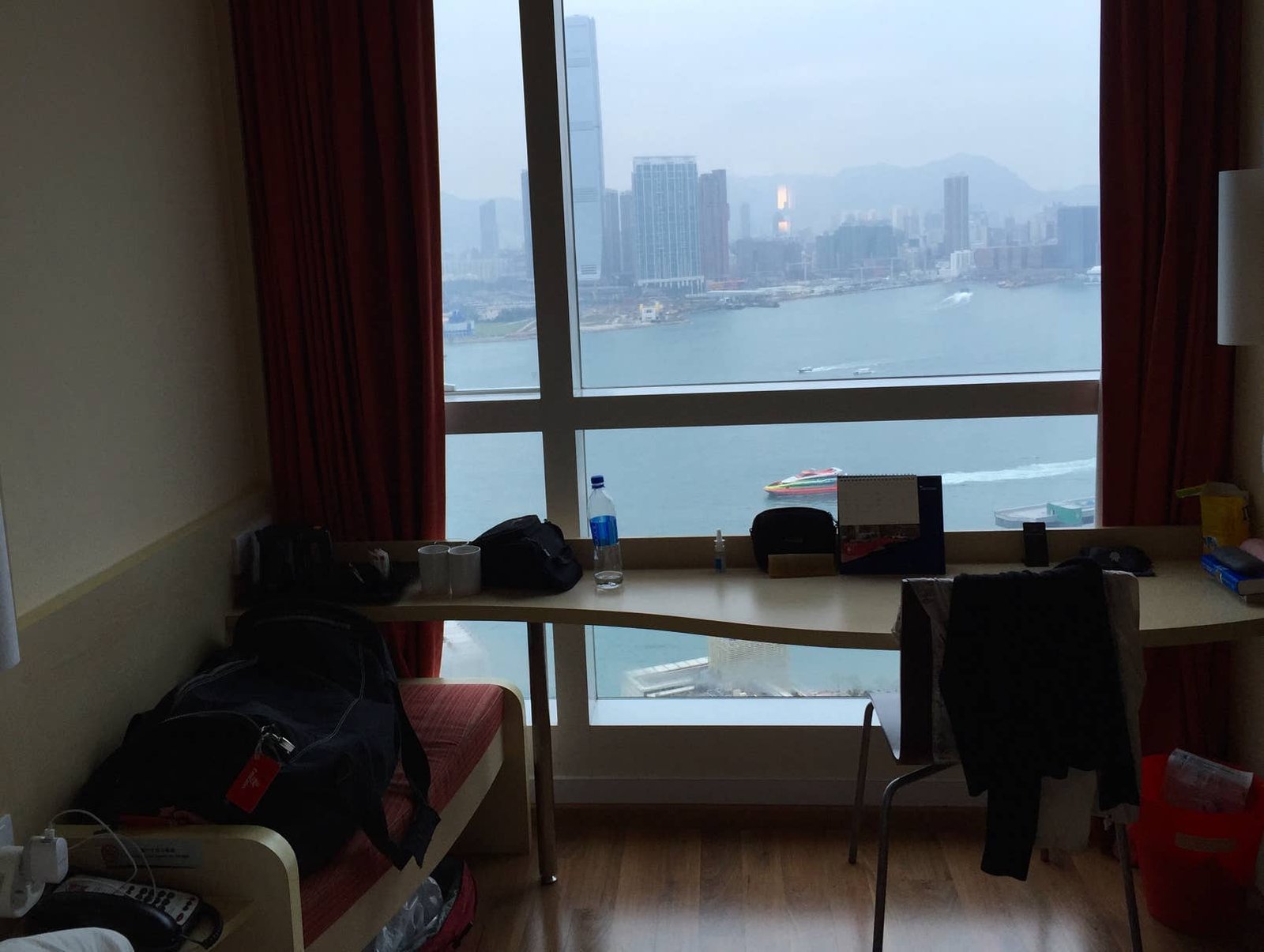 21è étage avec une vue splendide. Donne sur le port de Tsimshatsui East Kowloon. Il propose une