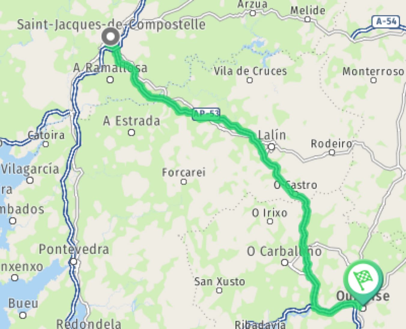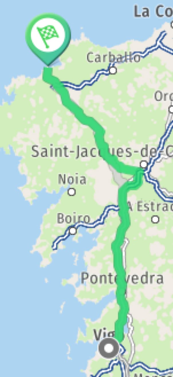 Billets ✈️ réservés avec un départ de Zaventem. Roadtrip prévoyant une boucle de St Jacques de Compostelle à St Jacques de Compostelle (c'est le principe de la boucle) en passant par Orense, Vigo et Laxe.