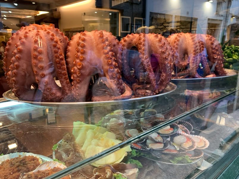 Dégustons à l'occasion de ce séjour 2 spécialités : le gateau aux amandes (made in Santiago) et le poulpe. J'adore !