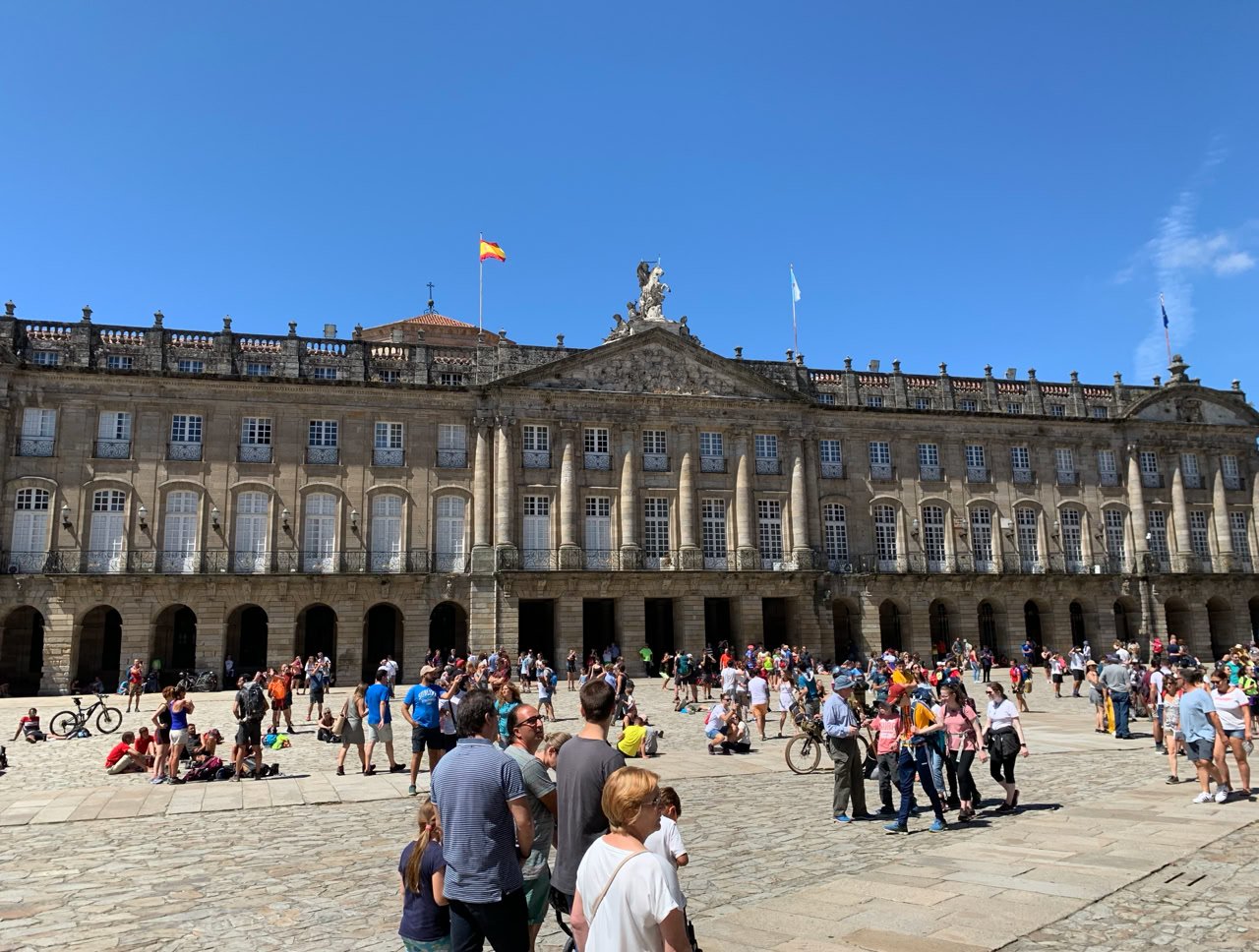 Notre hôtel est bien situé sur la Place principale. St Jacques de Compostelle est une ville vivante avec des spectacles de rue.