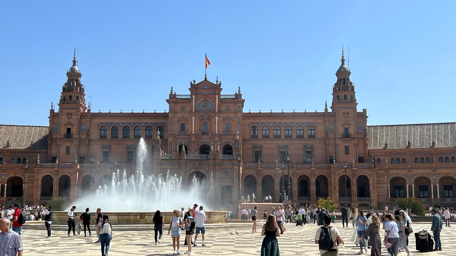 La place est vraiment superbe. D’un bout à l’autre, des bancs ornés de mosaïques représentent les provinces espagnoles.