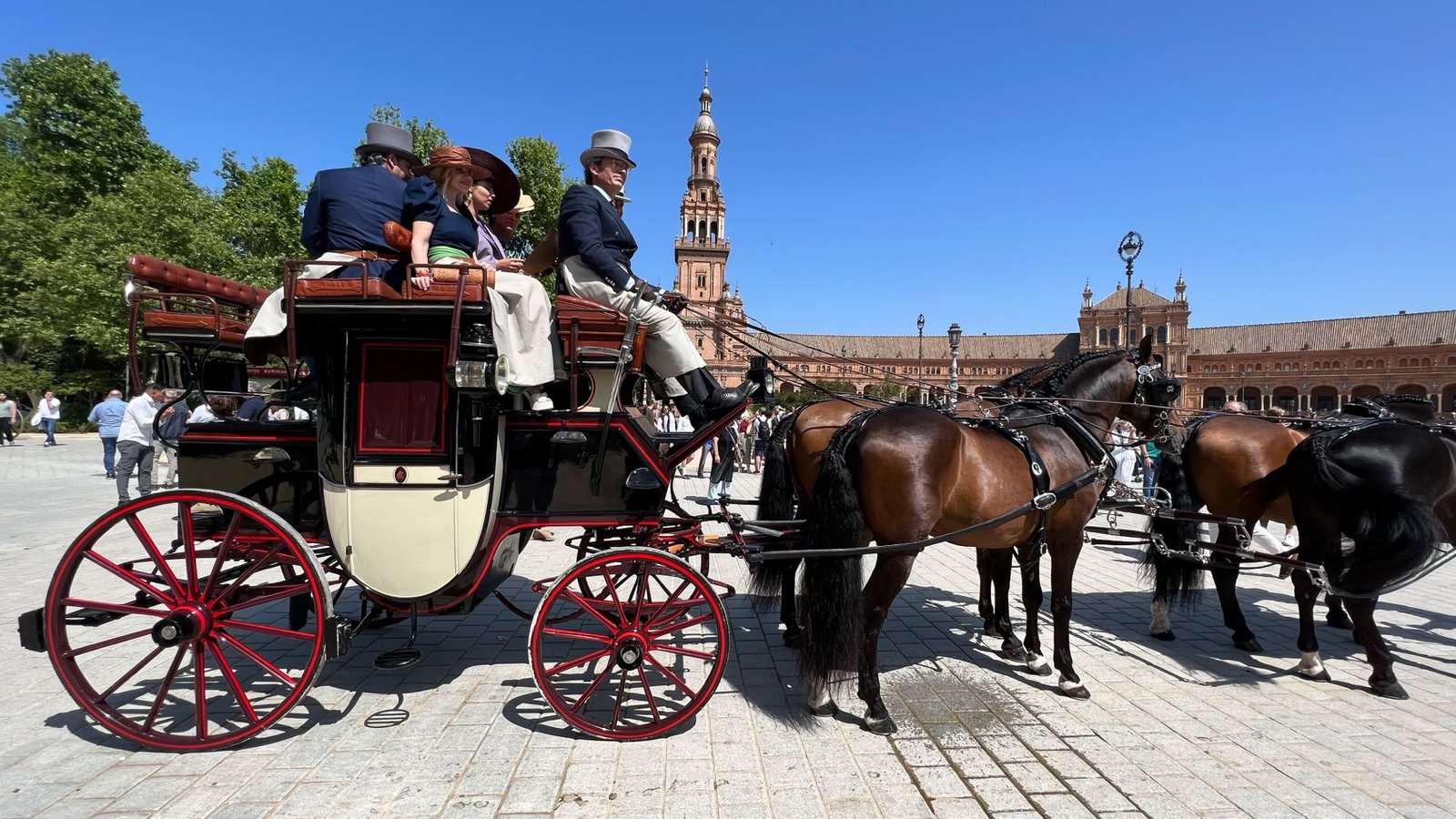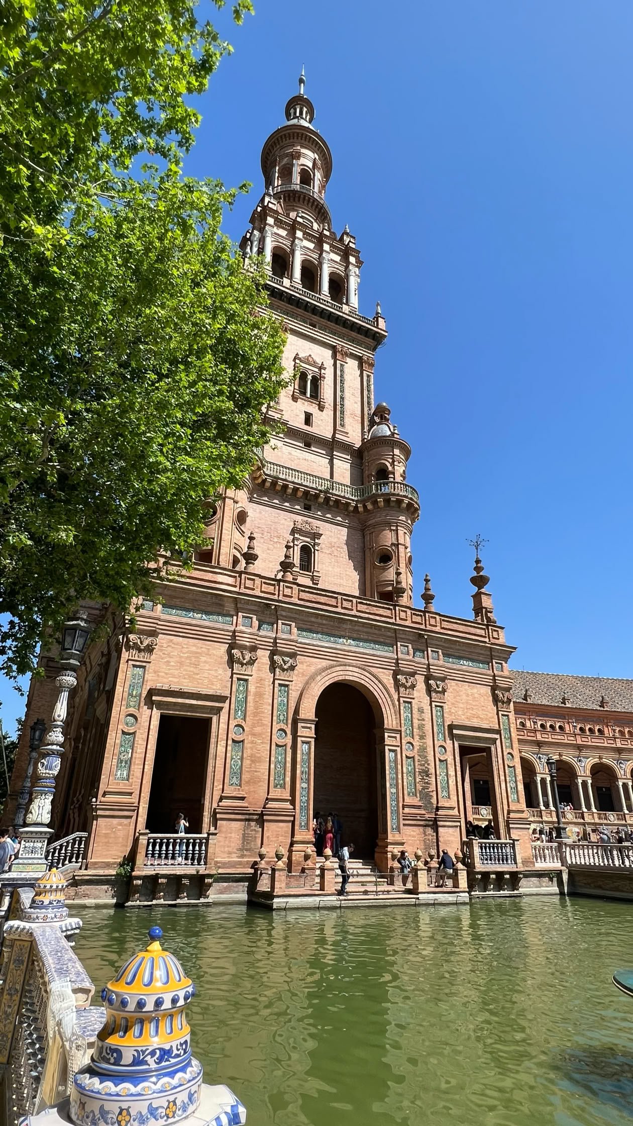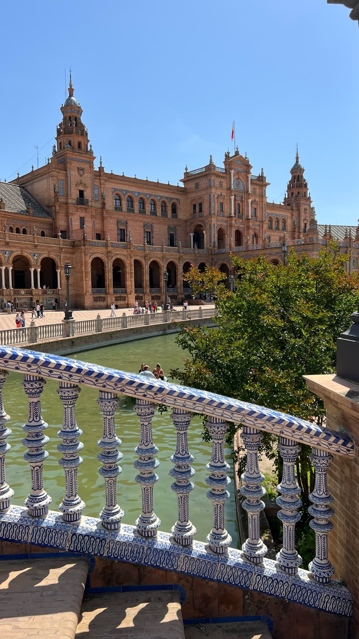 Last day in Sevilla. Visite de la Place d’Espagne. Vraiment superbe endroit, Elle fut conçue pour l'Exposition ibéro-américaine de 1929. La place forme un demi ovale dont le plus long diamètre mesure 200 m. Symbolisant, par sa forme, l'Espagne accueillant à bras ouverts ses anciennes colonies. Tout un programme.