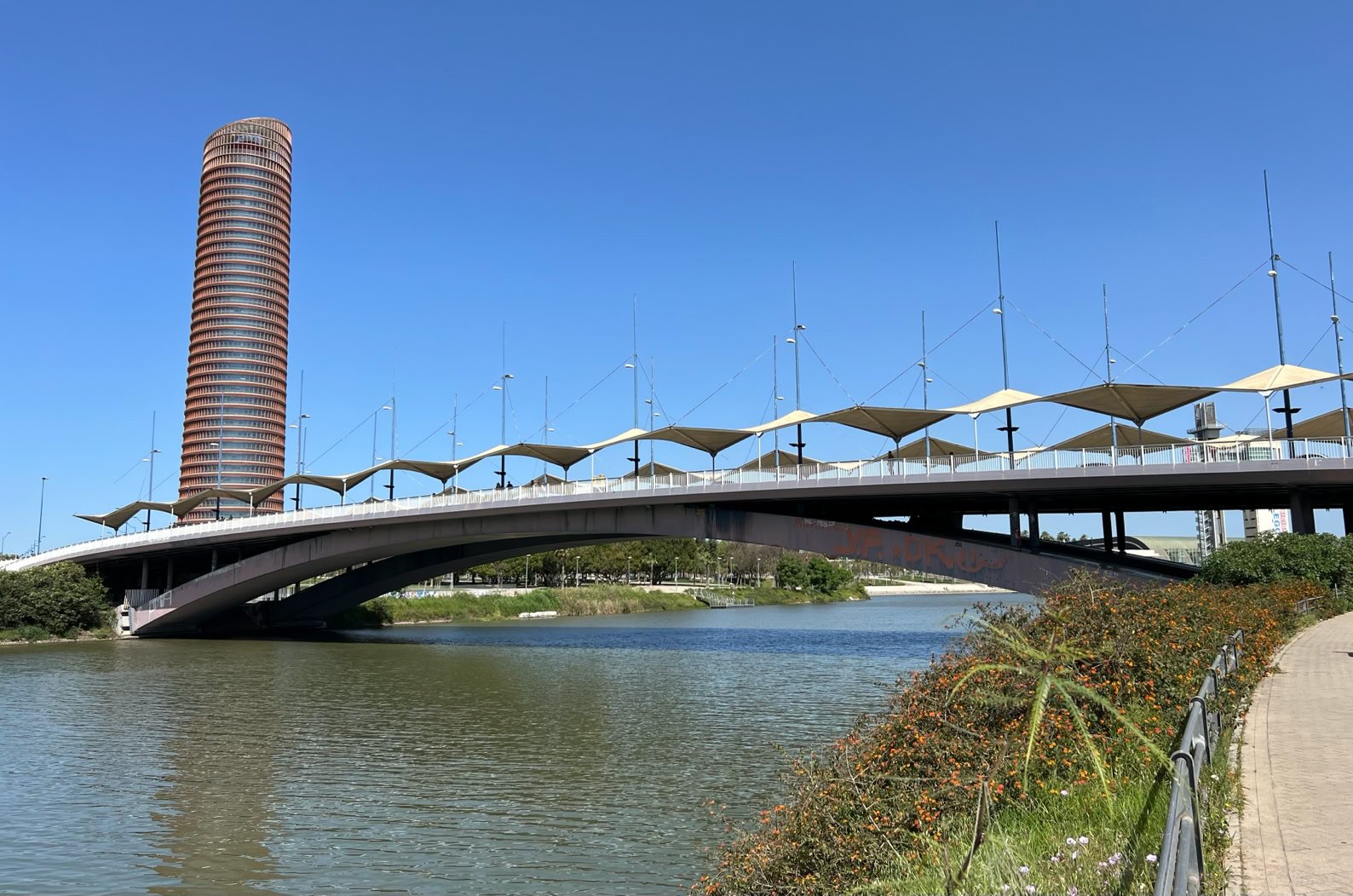 Promenade du matin près du Rio Guadalquivir (très agréable) jusqu’à la promenade Alameda de Hercules avec ses 4 colonnes.