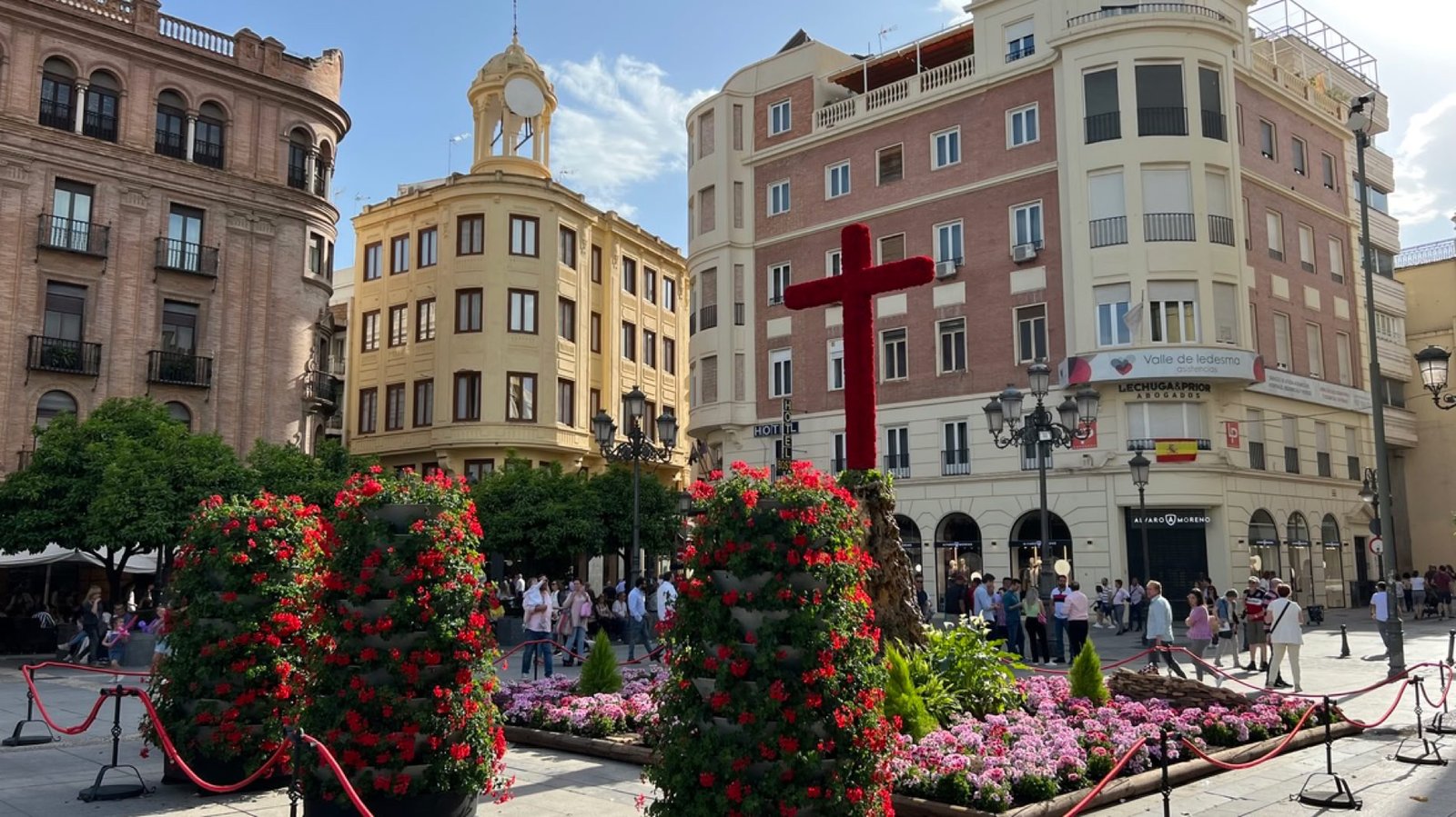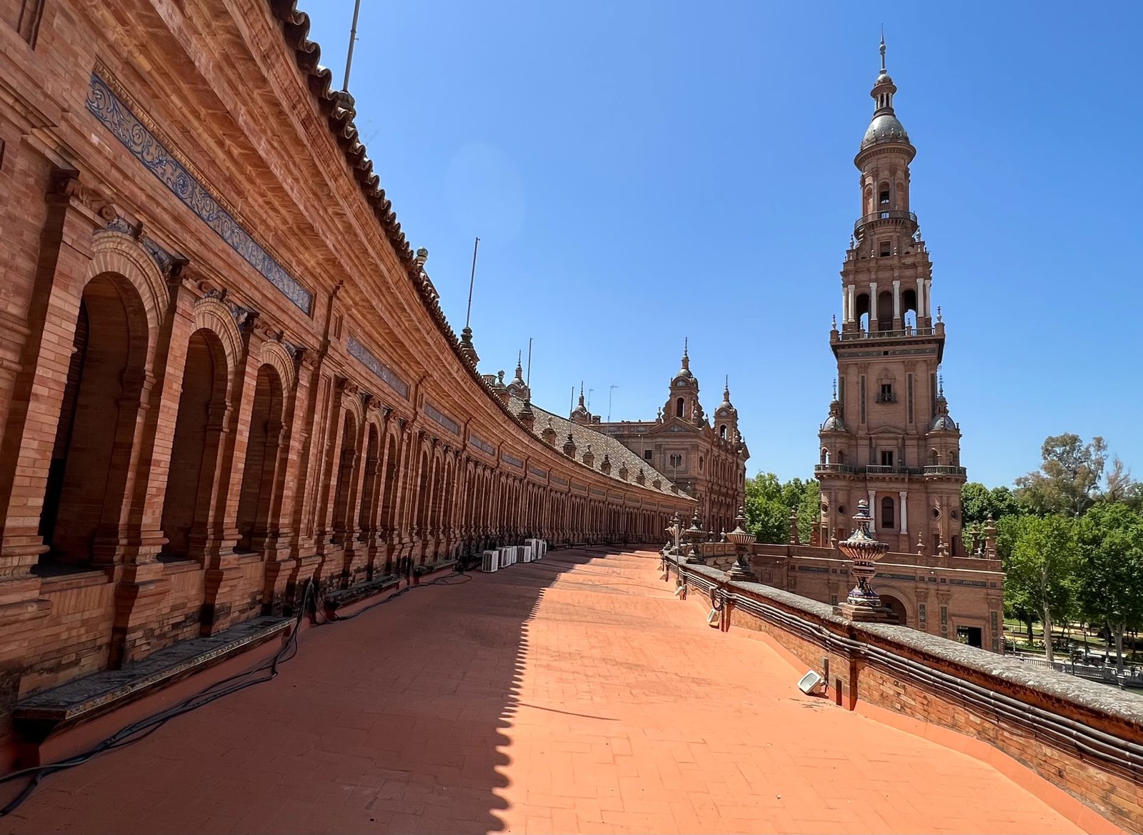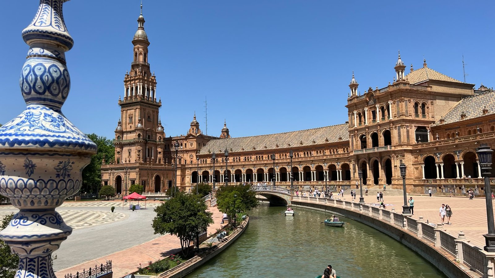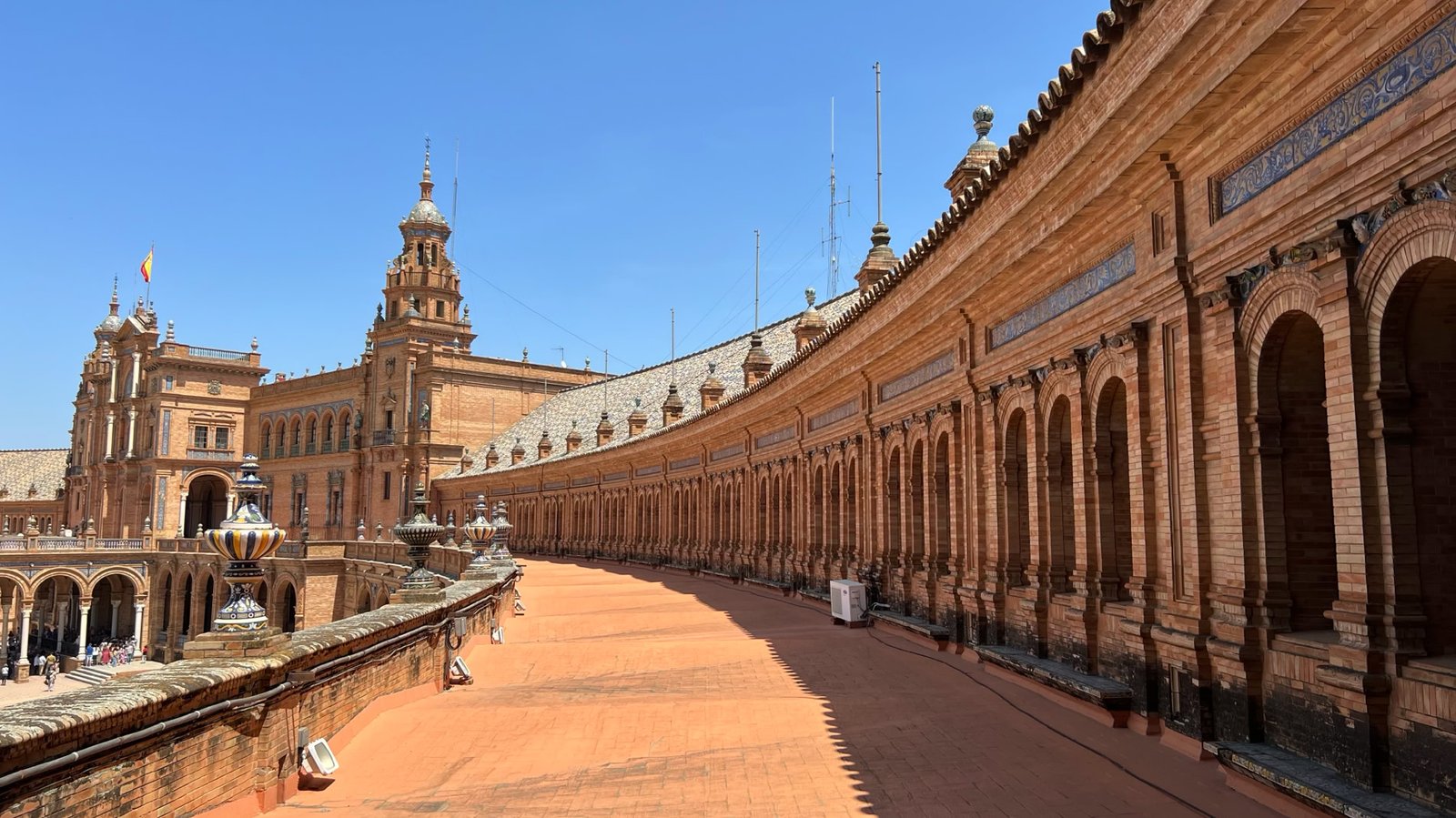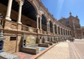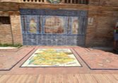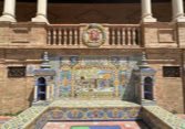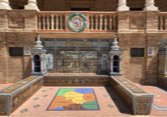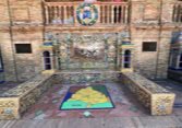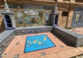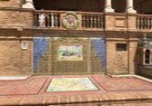 Des bancs et des ornements en céramique peinte (azulejos) représentent, par ordre alphabétique, les 48 provinces d'Espagne qui existaient à l'époque
