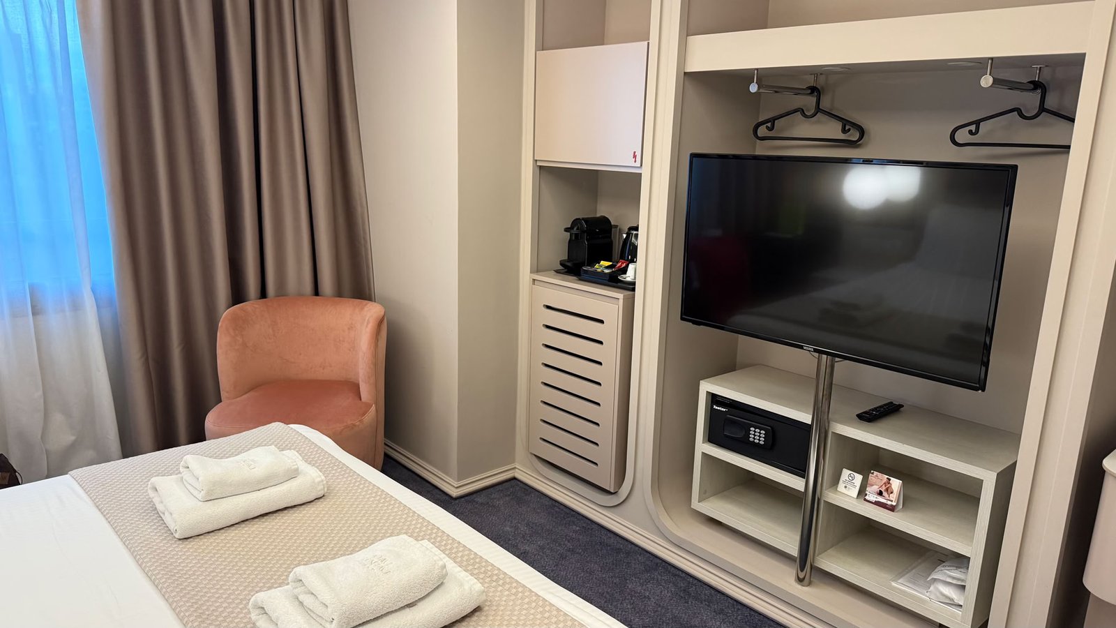 Chambre spacieuse, confortable, pratique (en termes de rangement) et plutôt calme.