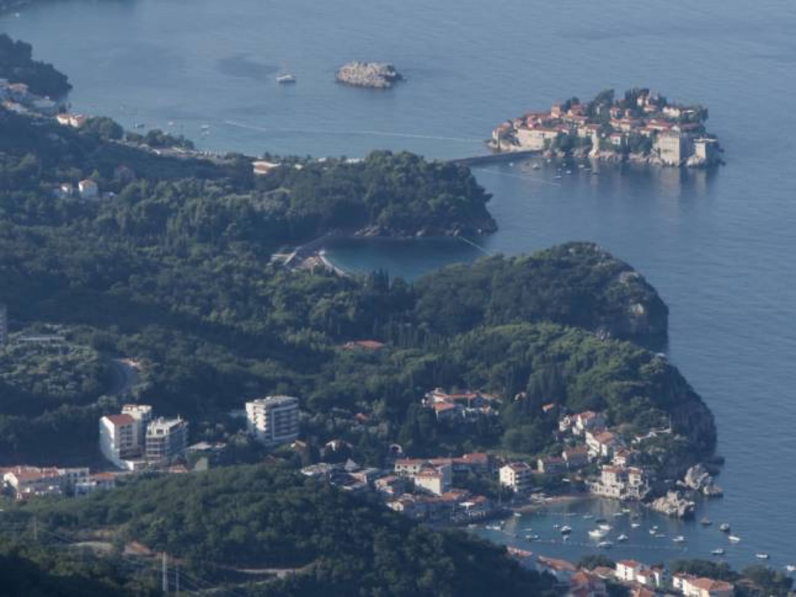 Concrètement se rendre à Sveti Stefan revêt peu d'intérêt. Mieux vaut prendre un peu de hauteur pour avoir une vue aérienne du site.