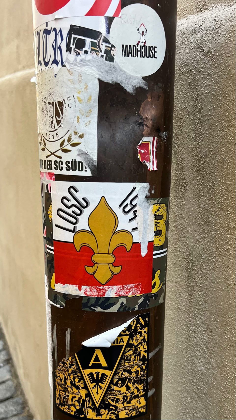Après le sticker dans les toilettes de l’aéroport de Bologne, voici que, sur le chemin menant au Château, je tombe sur une marque de la présence passée de supporters du LOSC. Décidément le LOSC est incontournable 😊.