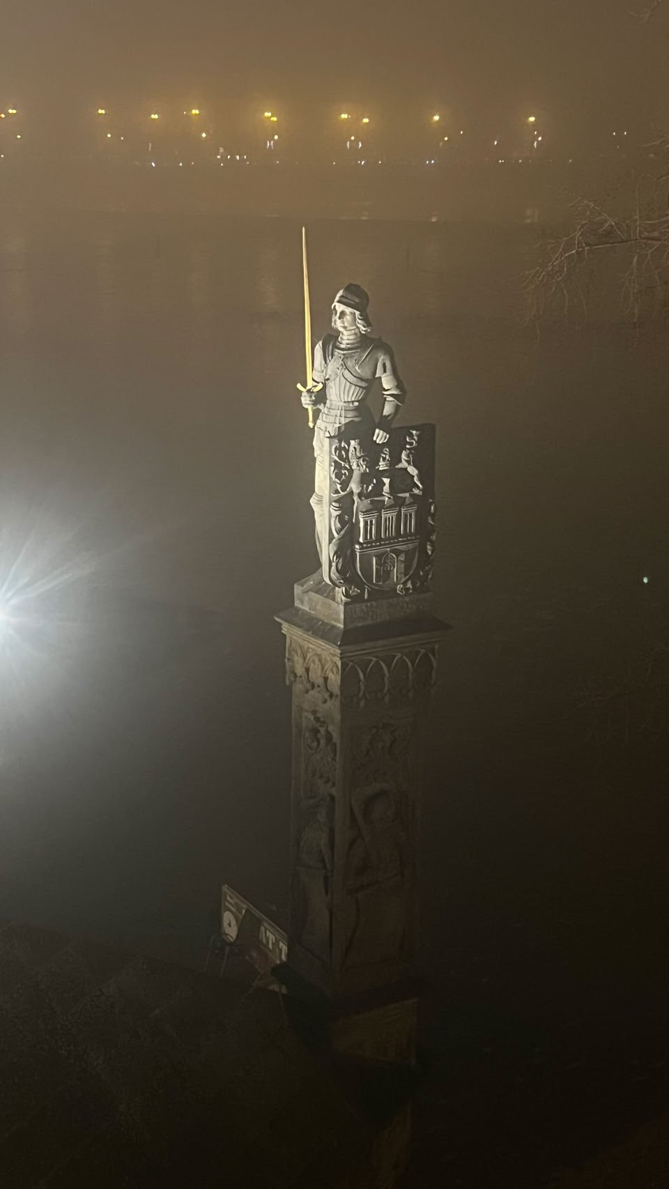 Après notre restau, retournons sur le Pont Charles. Beaucoup de monde et surtout une mauvaise nouvelle concernant la suite de la soirée. Le brouillard s’est invité à la soirée. On entend des feux d’artifice mais on ne voit rien.