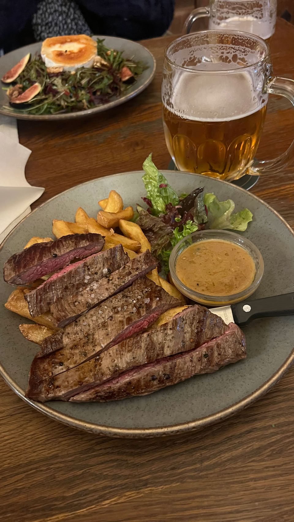Pas de foie gras, d’huitres ou de saumon mais du bon boeuf avec des frites et une bière.