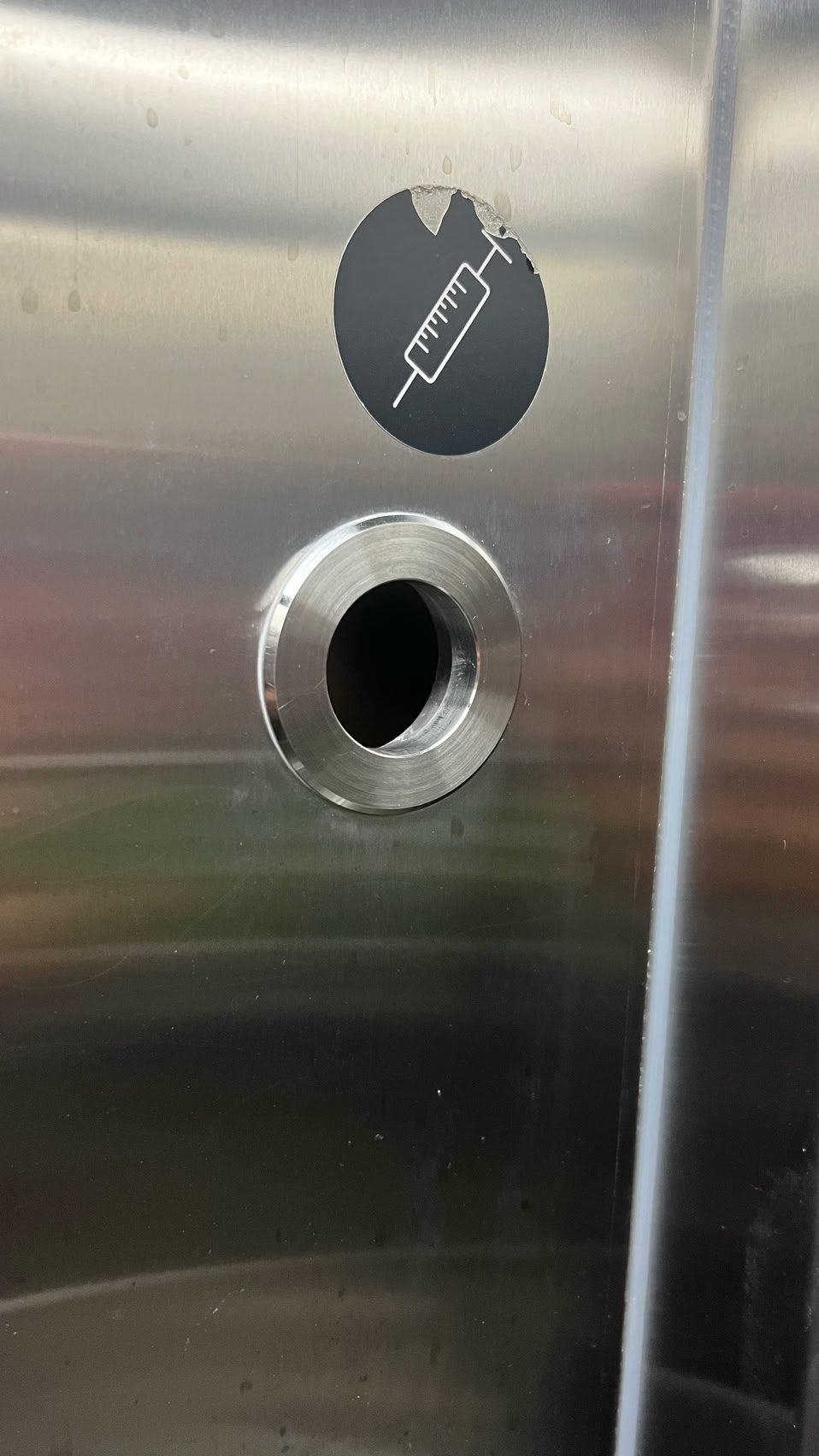 Ensuite, dans les toilettes publiques, cet emplacement pour que les gens y jettent leur seringue… Strange non ?