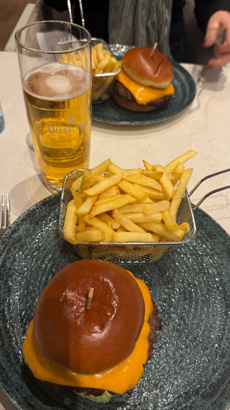 Petite collation à l’aéroport avant de partir. Bretzel, saucisses, bière… Valeurs locales