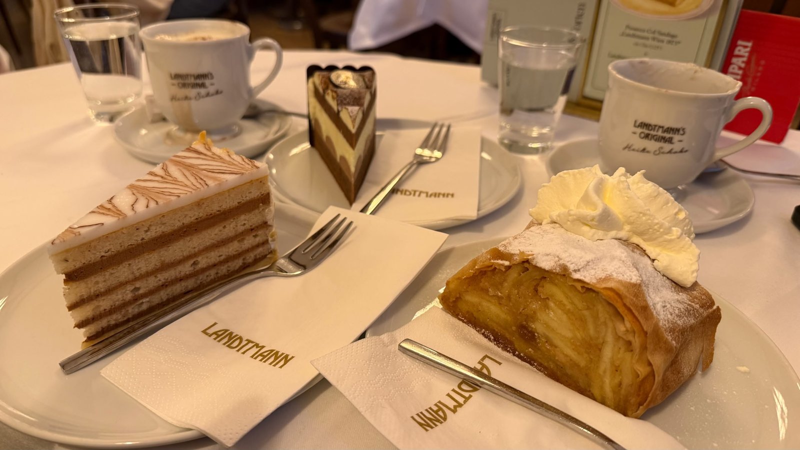 Bons gâteaux dont le célèbre Apfelstrudel et chocolat chaud : idéal pour se réchauffer.