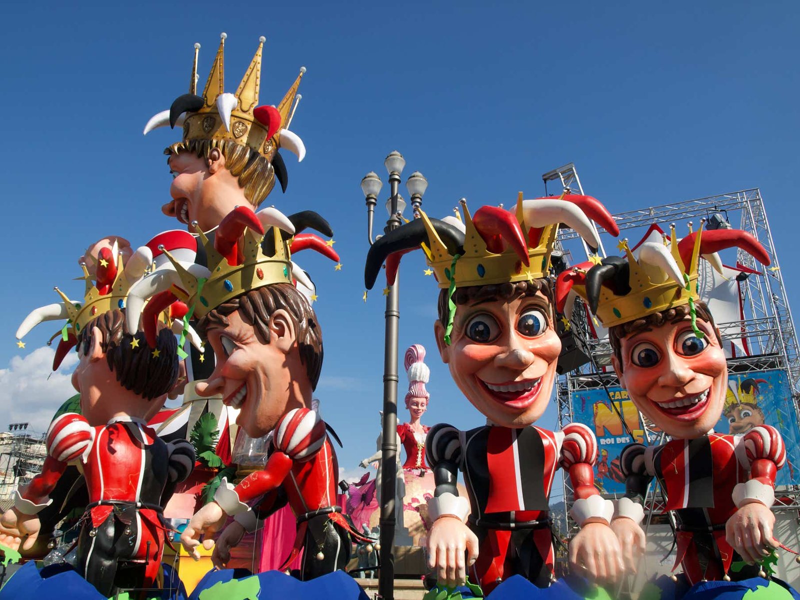 - Le carnaval en lui même : Très joli à voir mais sans âme. Aucune ambiance (3è et 4è âges obligent), pas de musique ou de chants festifs comme à Dunkerque, pas de personnes déguisées comme à Venise. Des HP balancent une musique techno sans grand intérêt lors des défilés (corso).