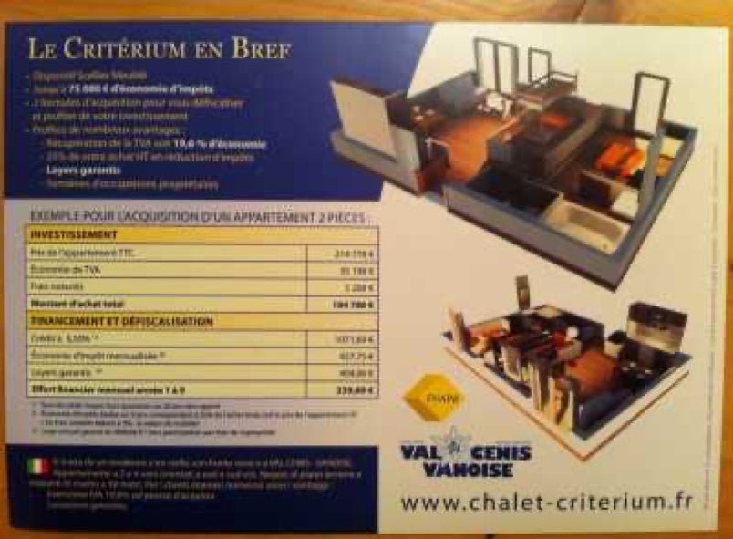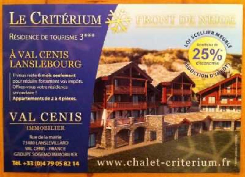 Suis passé à la Mairie. Ai trouvé, avec intérêt, la plaquette commerciale concernant la résidence Critérium.
