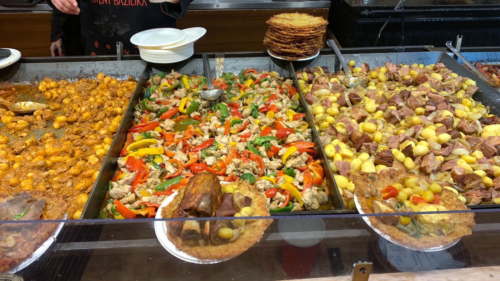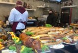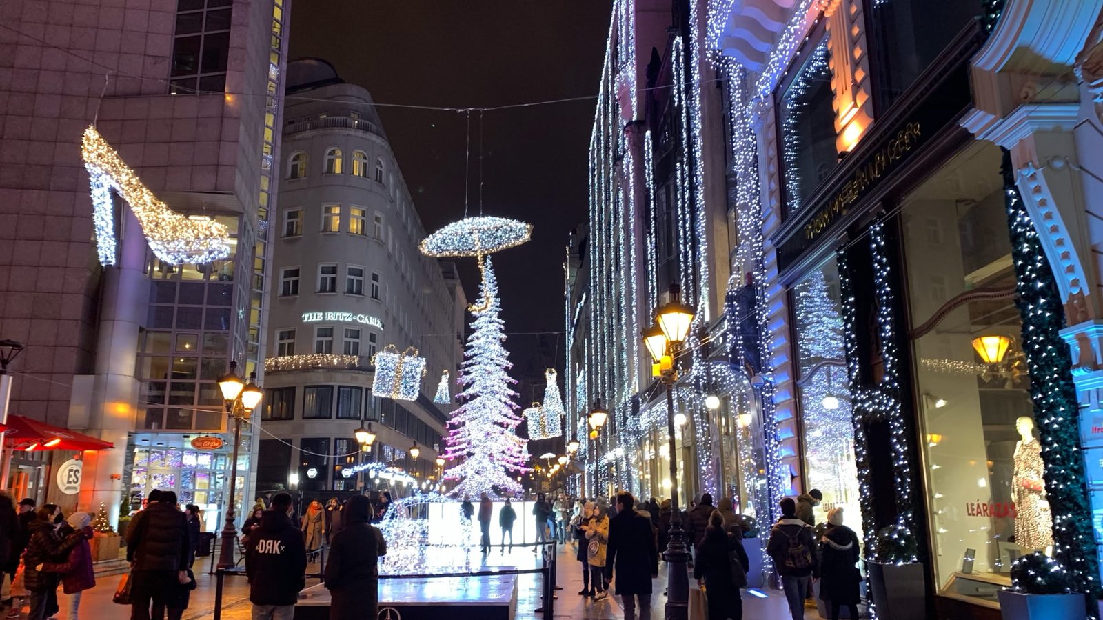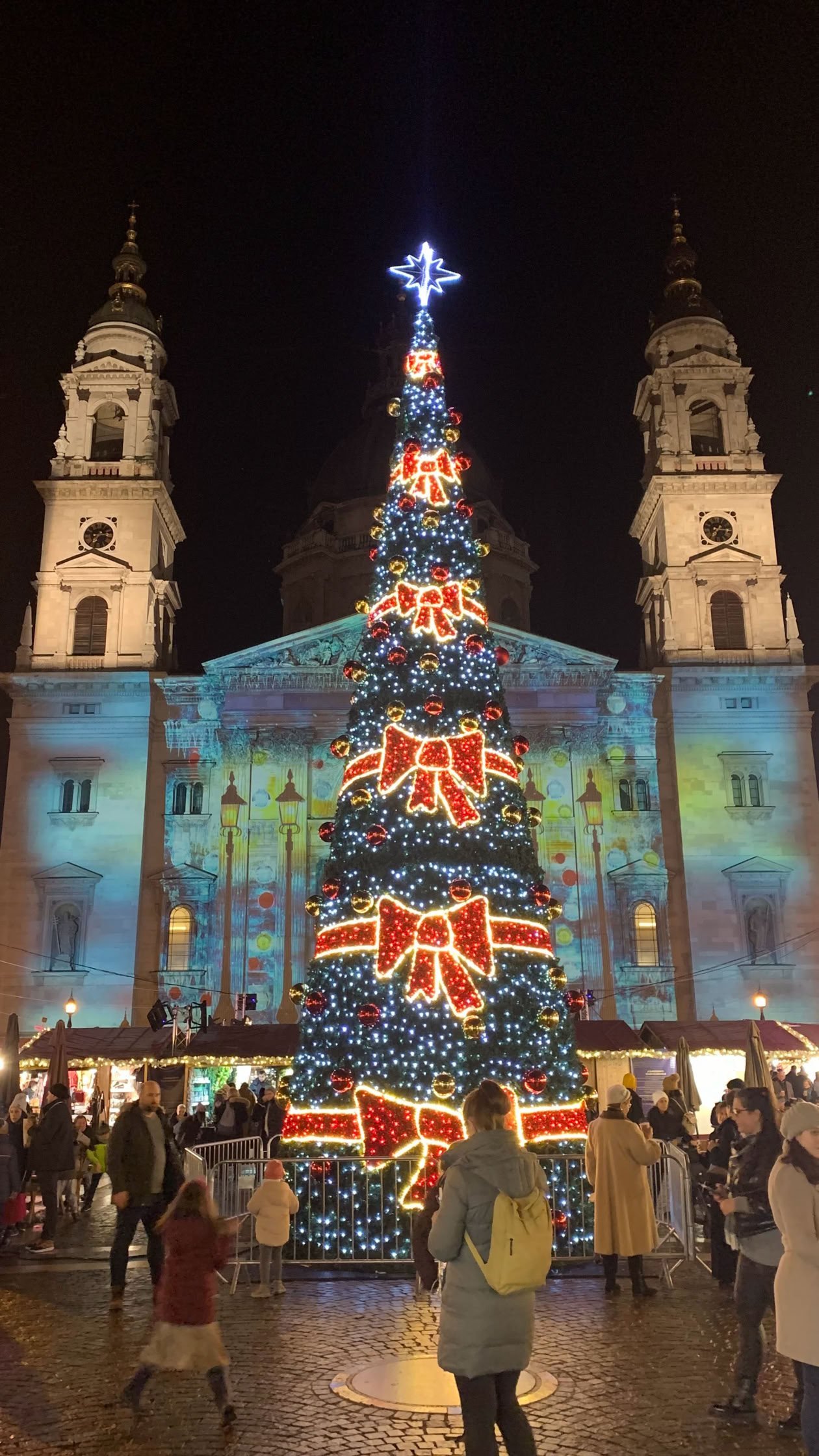 Pour le réveillon, nous n’avions rien réservé. Nous pensions profiter des différents marchés extérieurs proposant différents types de bouffe. Malheureusement, avec le COVID, beaucoup de ces marchés étaient fermés. Nous nous sommes rabattus sur celui situé à proximité de la Basilique Saint-Étienne. Beaucoup de choix mais peu de places disponibles sur les bancs. Nous avons toutefois réussi à trouver 2 places à côté de 5 autres personnes… russophones.