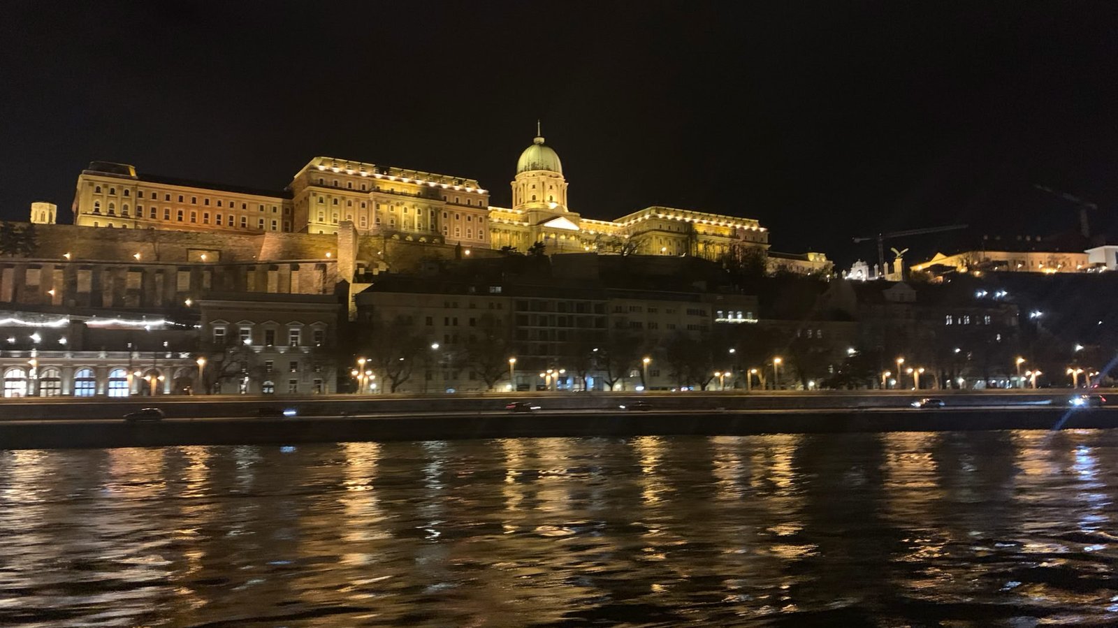 Dîner sur un bateau (accosté) sur le Danube près de l’hôtel. L’année commence bien”.