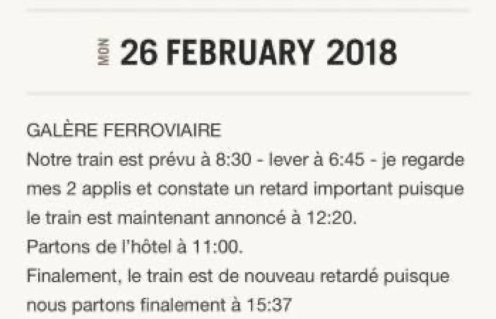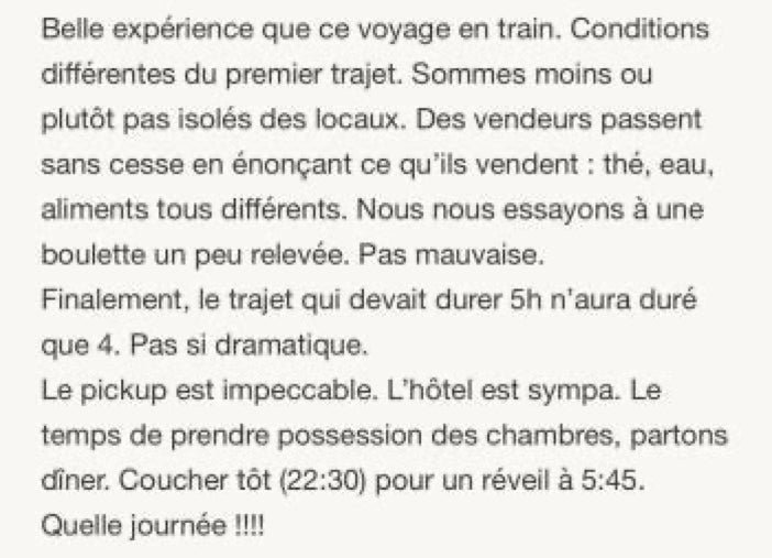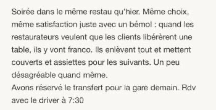 L'appli Maps.me a été hyper précieuse car difficile de savoir où on est quand on le traina pris beaucoup de retard et que le nombre d'arrêts n'est pas respecté.