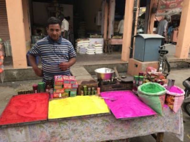 Le deuxième jour, les gens, habillés en blanc, circulent avec des pigments de couleurs qu'ils se jettent l'un à l'autre.
