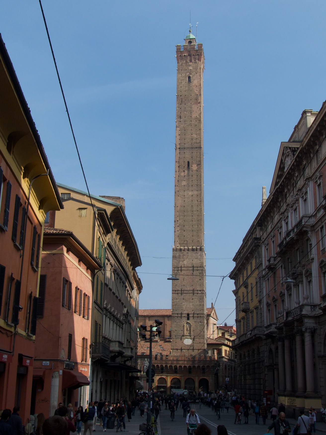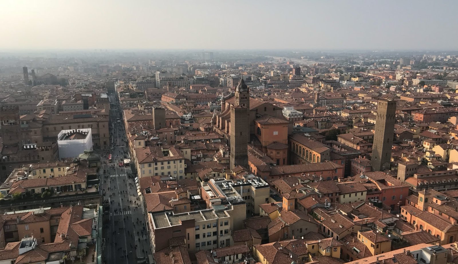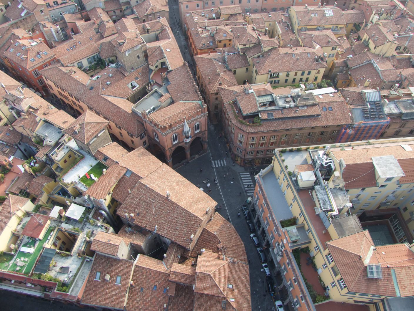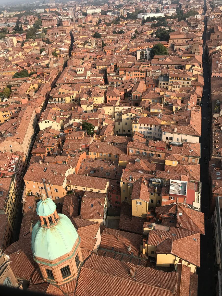Grimpons en haut de la tour Asinelli, la plus haute des 2 tours pour y découvrir un joli panorama. Superbe.