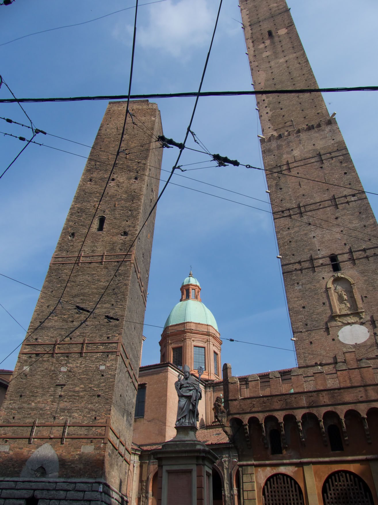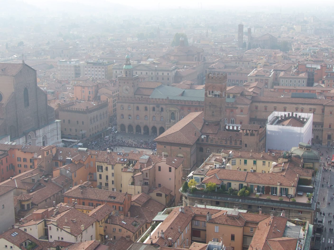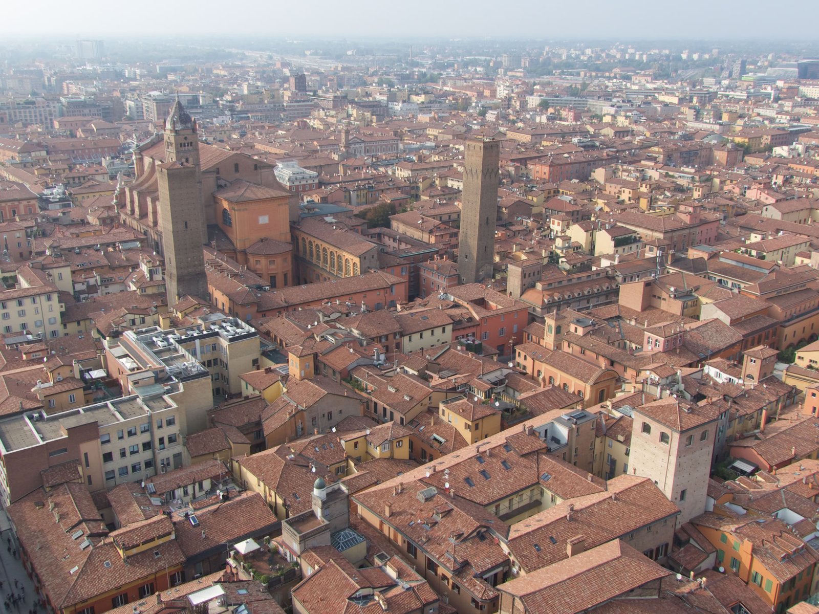 Grimpons en haut de la tour Asinelli, la plus haute des 2 tours pour y découvrir un joli panorama. Superbe.