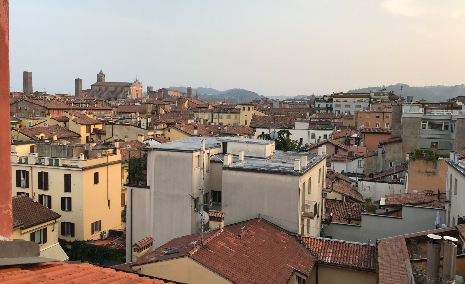 Fin de journée sur Bologne (vue de notre chambre)