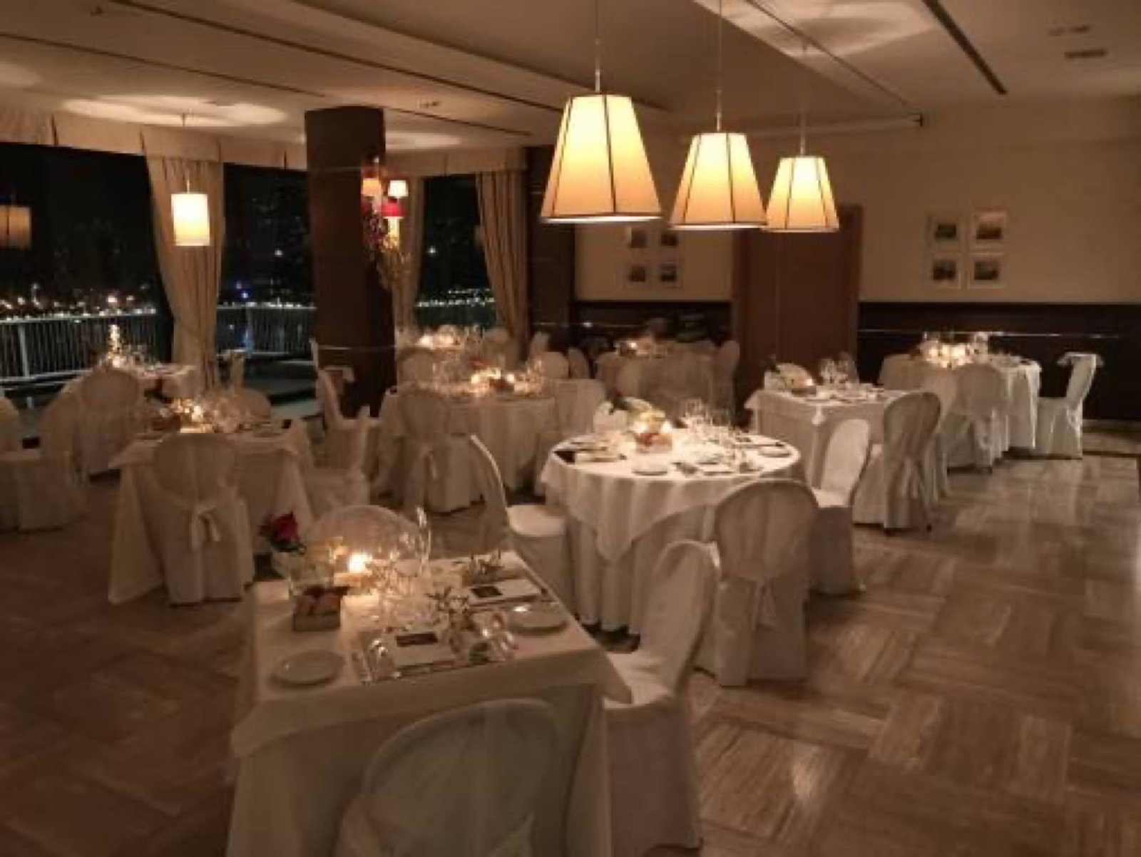 Notre table étant placée près des baies vitrées, profitons des feux d'artifice qui sont tirés.