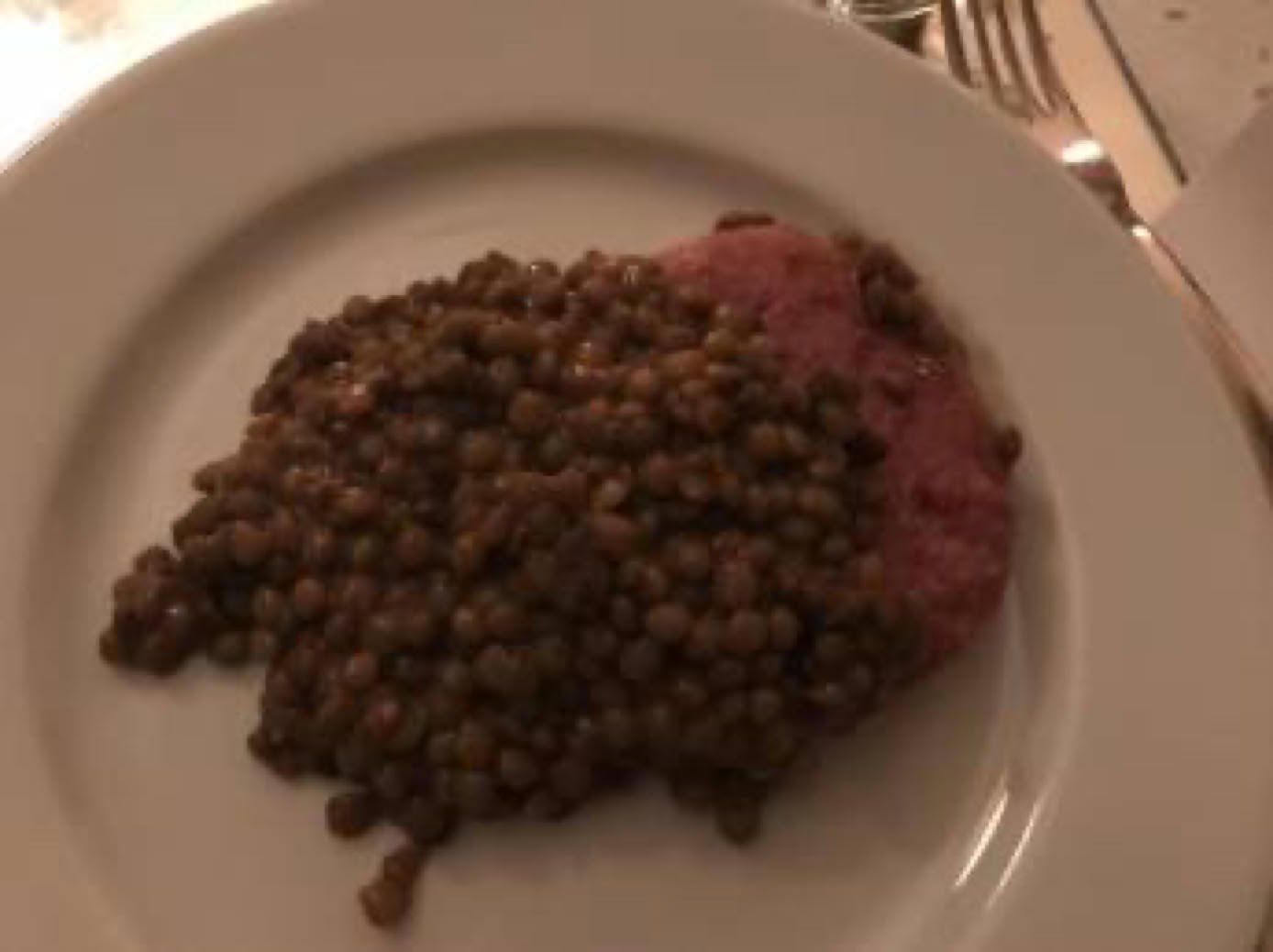 Traditional pork sausages and lentils