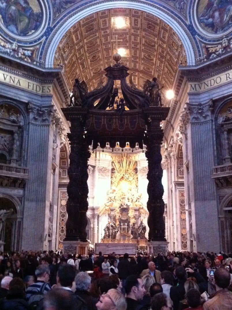 Lors de notre visite de la Basilique, B16 a fait une apparition pour parler à la foule présente sur la Place St Pierre.