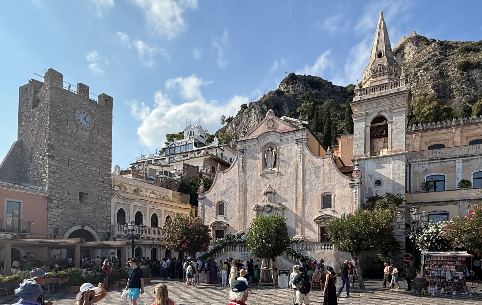 Après notre promenade en mer de la veille, le programme du jour nous amène à Taormine; ville très (trop ?) fréquentée par les touristes. Sur la route, nous faisons une halte à Castello di Mola : très joli site.