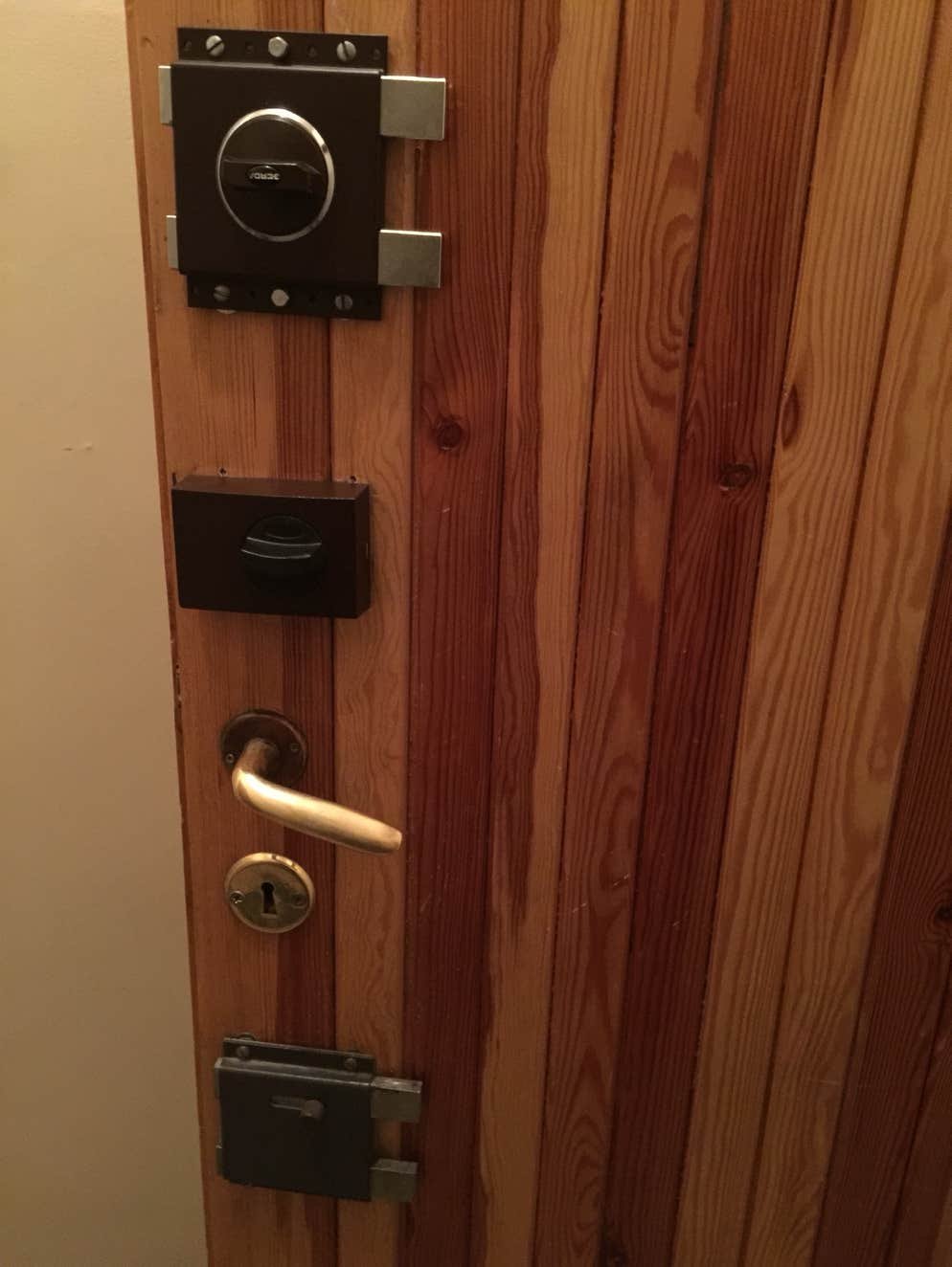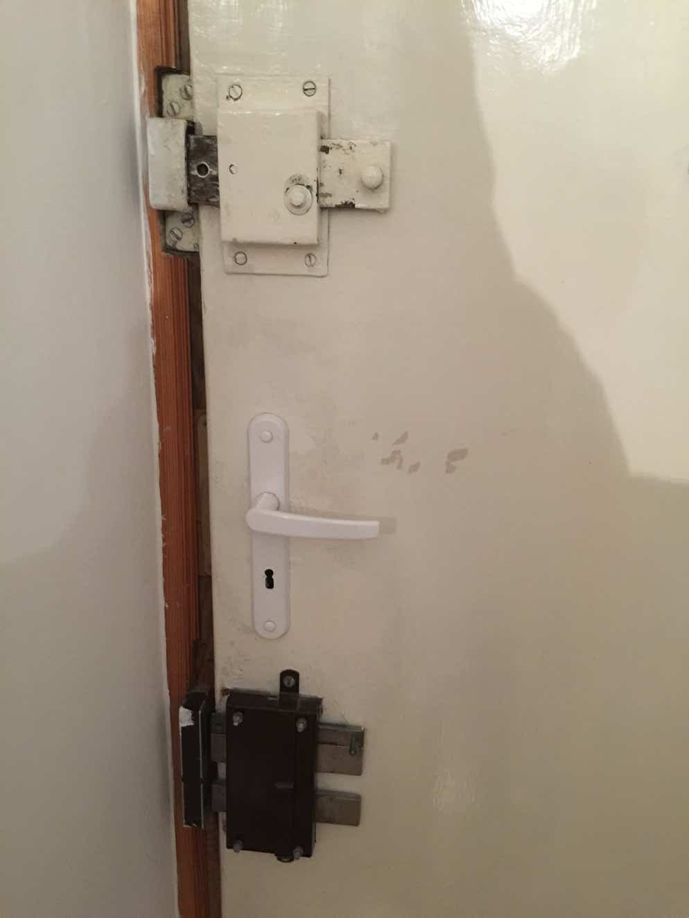 Ai deux portes successives avec un nombre incroyable de verrous et de serrures...